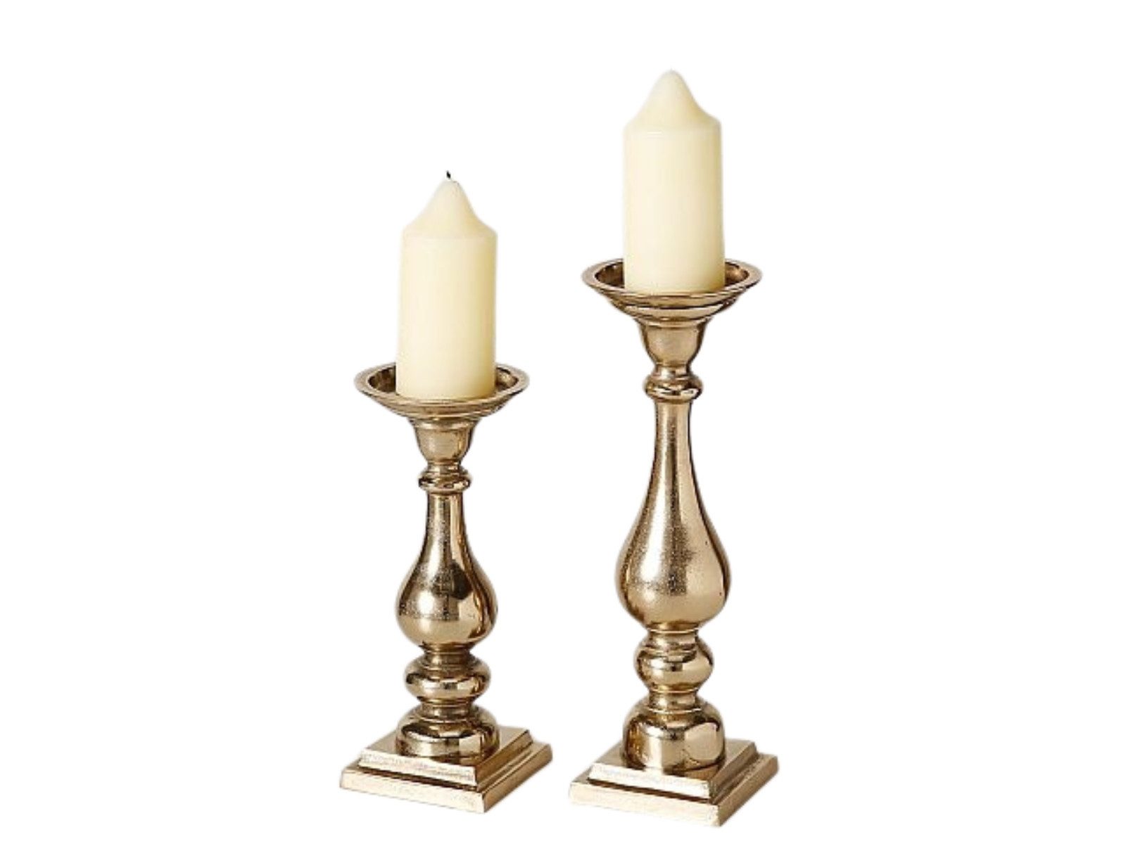 Der goldene Kerzenleuchter sieht sehr edel aus und wirkt mit einer tollen Kerze darauf sehr schön.