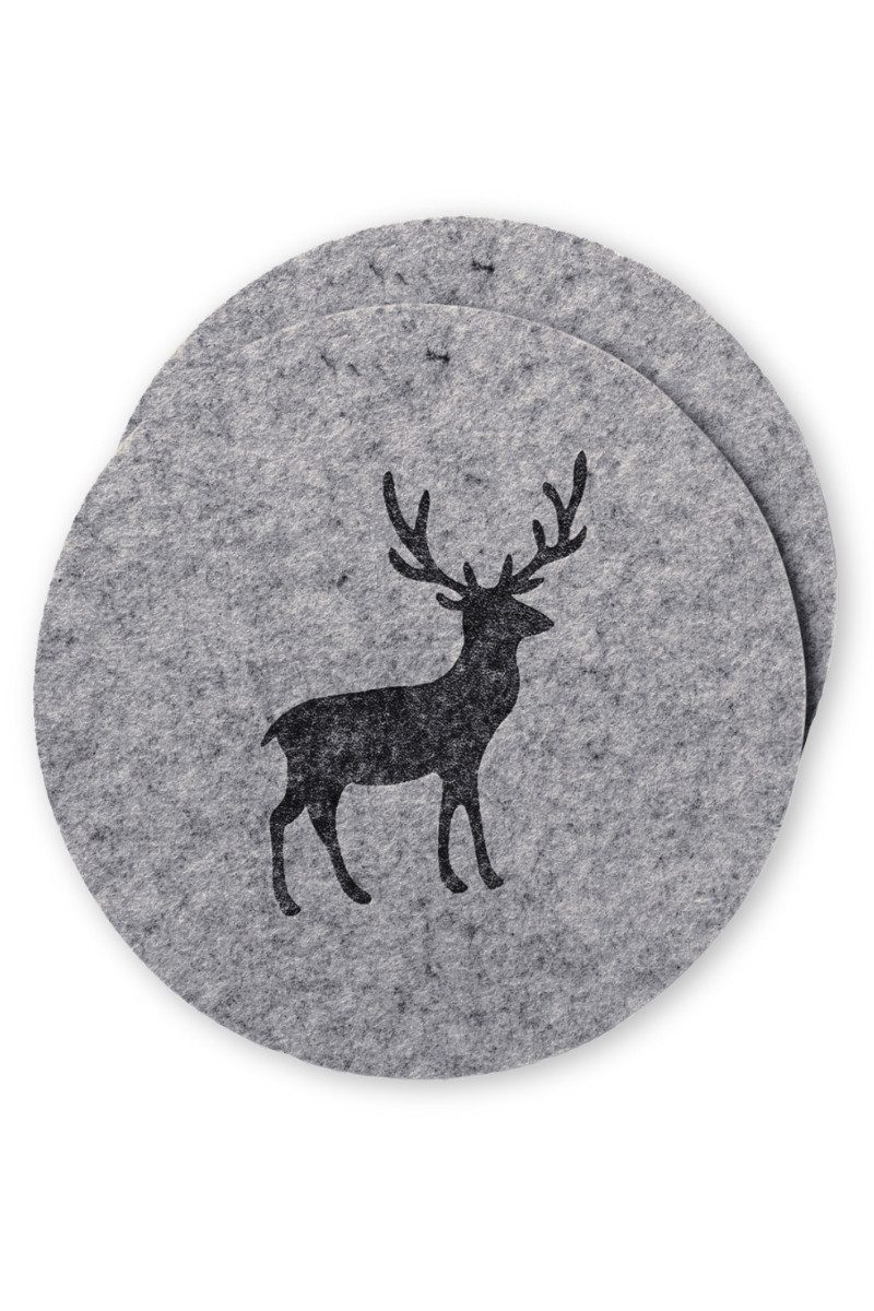 Dieses runde Tischset aus hochwertigem Filz verleiht Ihrem Esstisch mit einem stilvollen Hirschkopf-Motiv einen Hauch alpinen Charmes. Mit einem Durchmesser von ca. 38 cm und einer Stärke von ca. 0,5 cm schützt es zuverlässig vor Kratzern, Hitzerändern und Verschmutzungen. Das leicht vertiefte Hirschkopf-Design im harmonischen Farbkontrast und die robuste Verarbeitung machen es zum dekorativen Highlight. Ideal für den Alltag oder als Geschenkidee – entdecken Sie weitere Tisch-Accessoires im alpinen Stil hier im Shop!