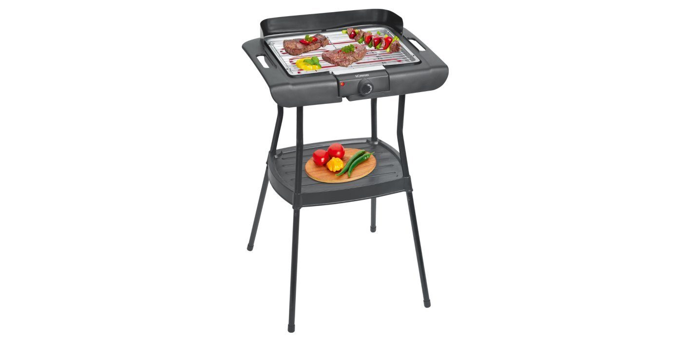Top-Features | Verchromter Grillrost Design mit geringer Rauch- und Geruchsentwicklung Stufenlos regelbarer Thermostat mit Kontrollleuchte auch als Tischgrill zu verwenden |