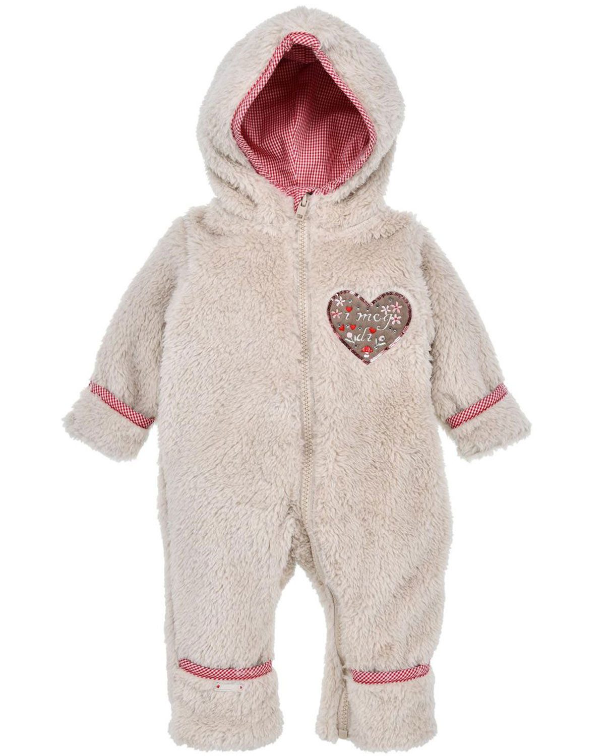 • Deutscher Hersteller: BONDI Kidswear • Lieferumfang: Fleeceoverall • flauschiges Fleecematerial • trachtiges rot weiß kariertes Innenfutter • Reißverschluss bis zum Fußteil Der zuckersüße Fleece Overall für kleine Mädchen und Babys ist der perfekte Begleiter für kühle Tage. Der Anzug verfügt über einen durchgehenden Reißverschluss, der vom Kinn bis zum Fuß reicht, und ermöglicht ein einfaches An- und Ausziehen. Besonders praktisch sind die umklappbaren Ärmel und Fußteile, die die empfindlichen Hände und Füße zuverlässig vor kaltem Wind schützen. Der Overall ist mit einer gemütlichen Kapuze ausgestattet, die mit weichem rot-weißem Stoff gefüttert ist, sodass Ihr Kind auch bei kühlen Temperaturen im Herbst warm bleibt. Ein Highlight ist die liebevoll gestaltete Herzapplikation auf der Vorderseite, die mit funkelnden Pailletten und zarten Stickereien verziert ist. Dieser Fleece Anzug kombiniert Komfort mit stilvollen Details und bietet Ihrem Baby kuschelige Wärme und Schutz.