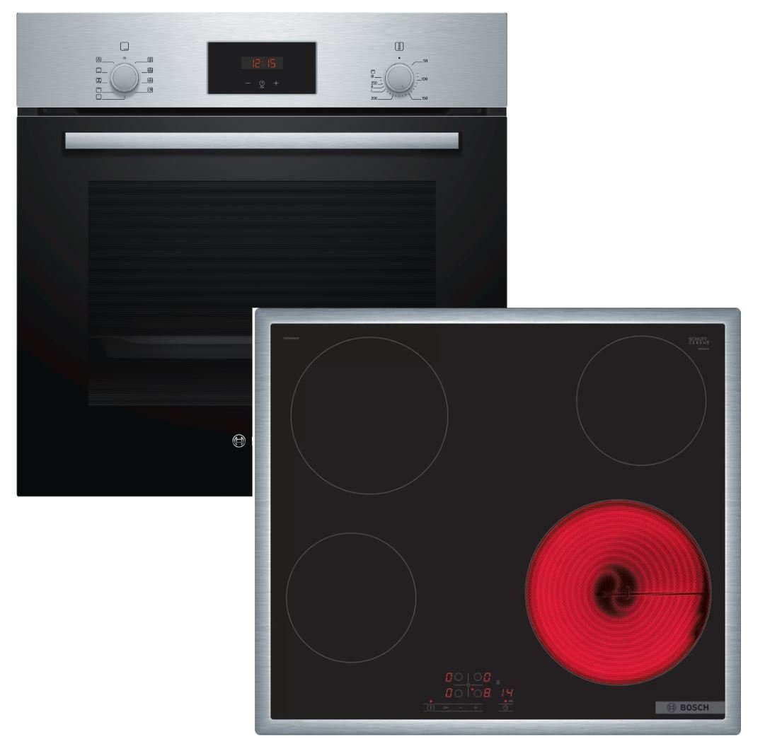 HERDSET Bosch Backofen mit Elektro-Kochfeld 60cm autark + Teleskopauszug