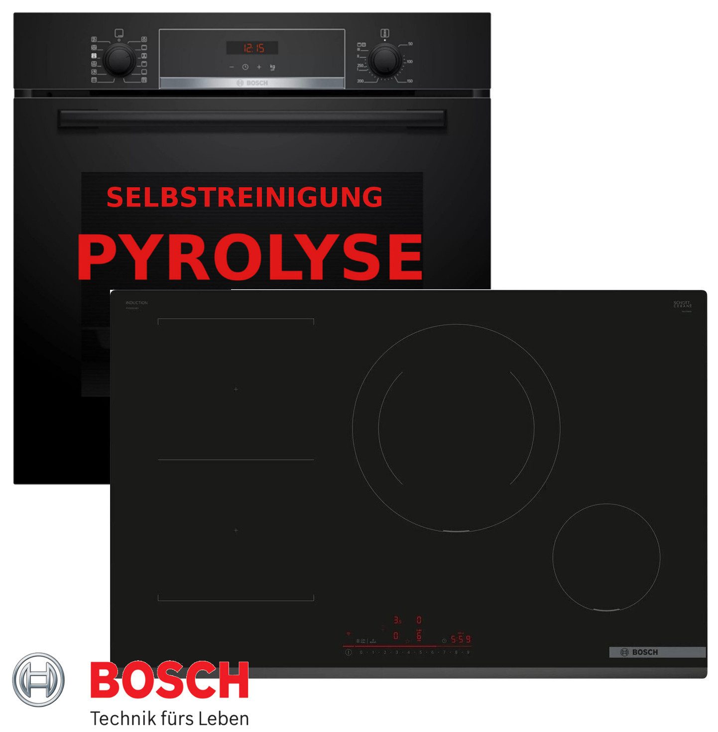 Bosch Herdset Induktion mit Pyrolyse Backofen und 80cm Kochfeld Induktion