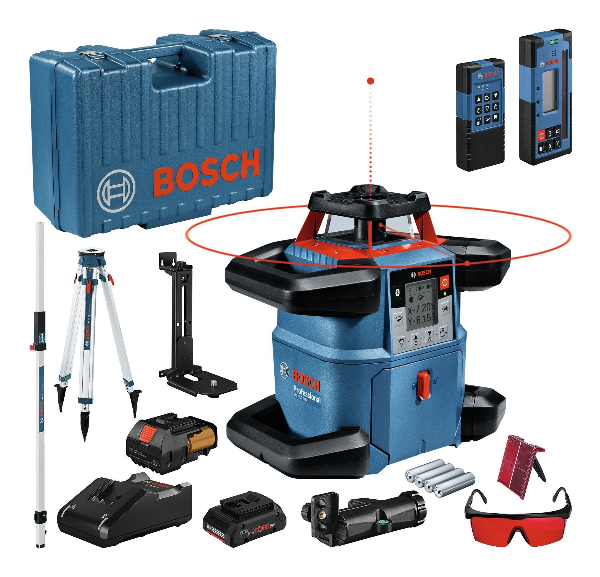 Bosch Professional Rotationslaser GRL 600 CHV mit 1x Akku ProCORE 4 Ah, Baustativ BT 170 HD & Messstab GR 240 - im Handwerkerkoffer