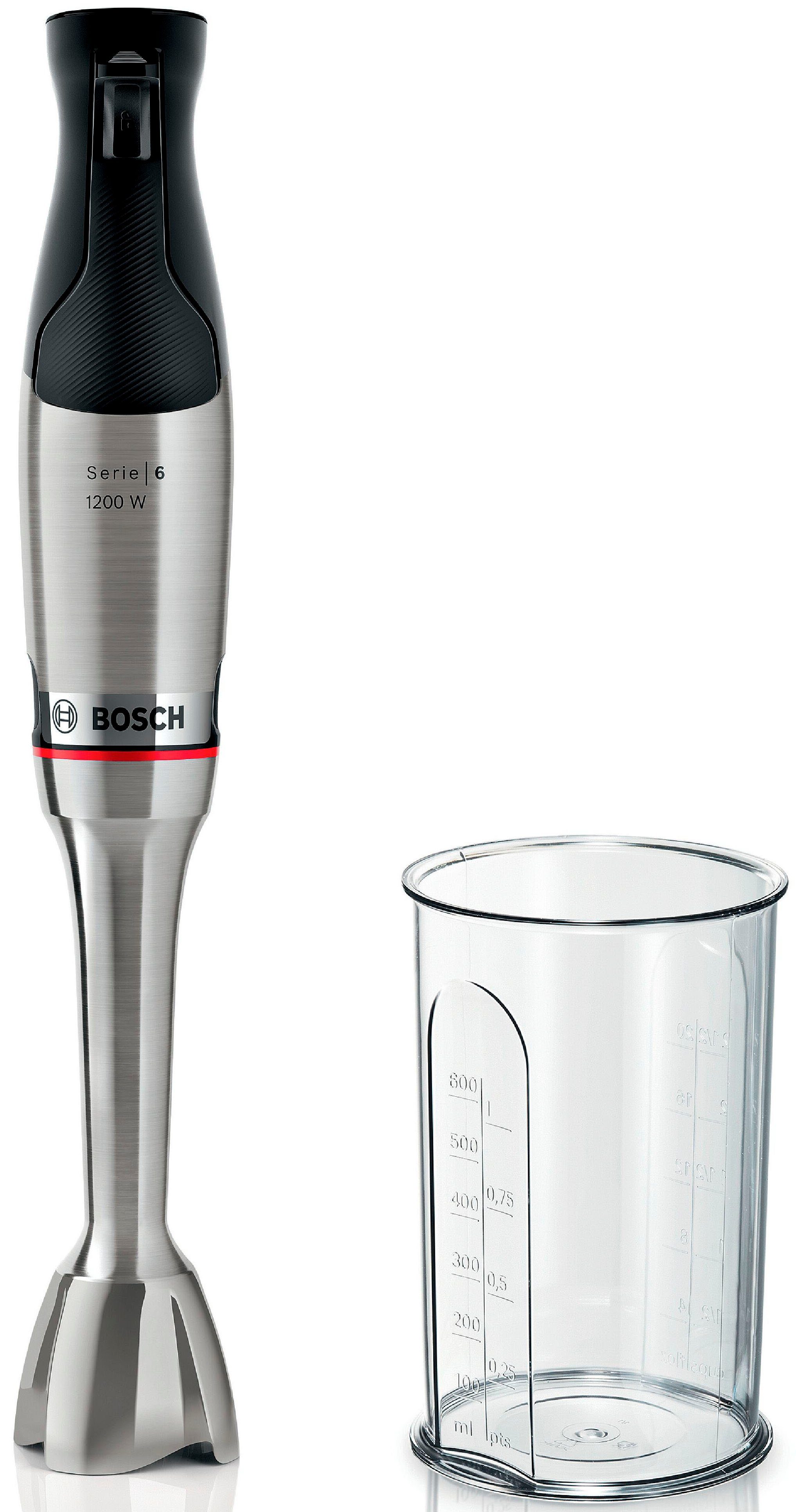 Mitgeliefertes Zubehör | Mixfuß aus Edelstahl, Mix- und Messbecher |