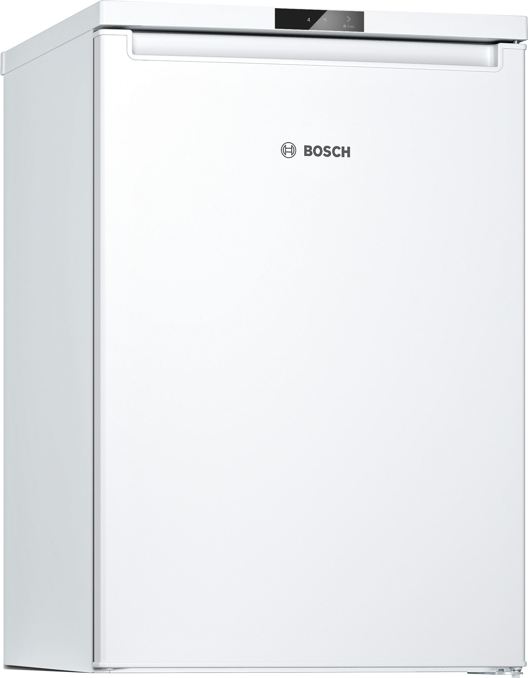 Der freistehende Table Top Kühlschrank »KTR15NWEB« ist von der Marke BOSCH. Das Gerät bietet ausreichend Platz für deinen Einkauf durch seine Maße von 56 x 85 x 58 cm (B/H/T) und das Kühlvolumen von 134 l. Das Modell arbeitet mit einem Betriebsgeräusch von 39 dB. Auf drei Ablageflächen aus Glas, davon eine höhenverstellbar, ist im Table Top Kühlschrank viel Platz für Lebensmittel. Durch die Schnellkühl-Funktion lassen sich Nahrungsmittel besonders schnell kühlen und einfrieren. Wenn die Tür zu lange offen steht, macht der Table Top Kühlschrank über ein Warnsignal darauf aufmerksam. Dank der LED-Innenbeleuchtung findet man sofort, was man sucht. Für diejenigen, die auf der Suche nach einem Table Top Kühlschrank sind, ist der »KTR15NWEB« von BOSCH eine gute Wahl.