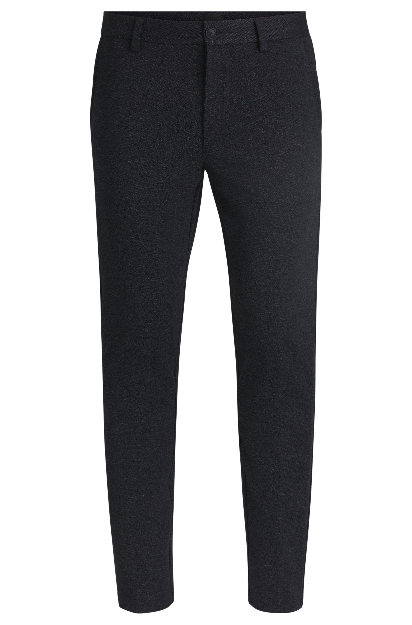 Fühl dich frei und stilvoll mit der Slim-Fit Jersey-Hose P-Kaiton von BOSS BlackStell dir vor, du könntest den ganzen Tag über Komfort und Eleganz genießen, ohne Kompromisse einzugehen. Die Slim-Fit Jersey-Hose P-Kaiton von BOSS Black macht genau das möglich. Diese Hose ist nicht nur ein echter Hingucker, sondern bietet dir auch eine perfekte Passform und Bewegungsfreiheit.Perfekte Passform trifft auf höchsten KomfortDie Hose zeichnet sich durch ihren schmalen Schnitt und den konischen Beinverlauf aus, der deine Silhouette gekonnt betont. Der mittlere Bund sorgt für einen angenehmen Sitz, der weder zu hoch noch zu tief ist. Dank des Material-Mixes aus Viskose, Polyamid, Elasthan und Polyester genießt du eine außergewöhnliche Flexibilität und ein weiches Tragegefühl, das dich durch den Tag trägt.Eleganz in jedem DetailDas unifarbene Design macht die Hose zu einem vielseitigen Partner für alle Gelegenheiten. Ob im Büro oder bei einem Abendessen, du wirst stets eine gute Figur machen. Die feinen Details wie die Eingrifftaschen vorne und die Leistentaschen am Gesäß unterstreichen den eleganten Look der Hose.Styling-TippsKombiniere die P-Kaiton Hose mit einem schicken Hemd oder einer legeren Bluse für einen professionellen Look. Für einen entspannten Freizeitstil passt ein einfaches T-Shirt und Sneakers. Egal, wie du sie trägst, diese Hose wird zu deinem neuen Lieblingsstück im Kleiderschrank.Schmaler Schnitt mit konischem BeinverlaufMittlere Bundhöhe für optimalen TragekomfortElastischer Material-Mix für BewegungsfreiheitVielseitig kombinierbar für jeden AnlassElegantes, unifarbenes DesignVerwöhne dich selbst mit der Slim-Fit Jersey-Hose P-Kaiton von BOSS Black und erlebe, wie bequem und stilvoll Kleidung sein kann!
