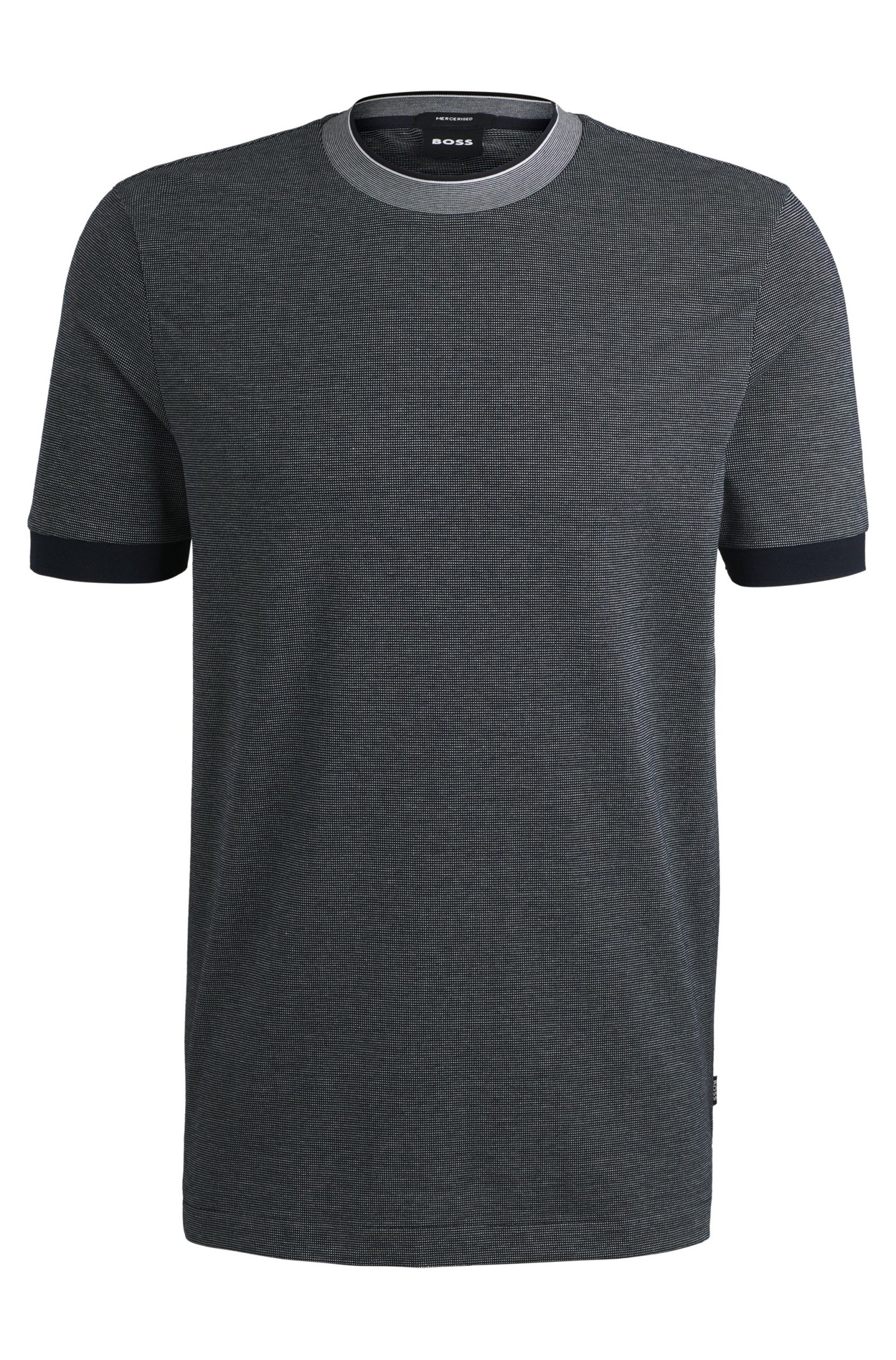 Verliebe Dich in den Komfort – Das T-Shirt Tessler von BOSS BlackStell Dir vor, Du könntest ein T-Shirt tragen, das nicht nur unglaublich stilvoll aussieht, sondern sich auch fantastisch anfühlt. Das T-Shirt Tessler von BOSS Black ist genau das, was Du brauchst, um Deinen Alltag aufzupeppen. Mit seinem schmalen Schnitt und dem klassischen Rundhalskragen bietet es eine perfekte Mischung aus Eleganz und Bequemlichkeit.Perfekt für jeden AnlassEgal, ob Du einen entspannten Tag zuhause planst oder ein Casual Friday im Büro ansteht – das T-Shirt Tessler ist Dein idealer Begleiter. Durch die Verwendung von atmungsaktiver Baumwolle bleibt Deine Haut den ganzen Tag über frisch und trocken. Wähle zwischen zwei schicken Farbtönen, die sich mühelos in jede Garderobe einfügen lassen.Umweltbewusst und modischNicht nur Dein Komfort, sondern auch die Umwelt liegt uns am Herzen. Die Baumwolle für das T-Shirt stammt aus regenerativer Landwirtschaft, die darauf abzielt, die Biodiversität zu fördern und den Boden durch CO?-Aufnahme zu regenerieren. So kannst Du Dich nicht nur gut anziehen, sondern auch gut fühlen, weil Du einen Beitrag zum Umweltschutz leistest.Ein Hauch von EinzigartigkeitDer Kontrastkragen fügt eine moderne Note hinzu, die das T-Shirt von anderen Basic-Shirts abhebt. Es ist die perfekte Wahl für Männer, die Wert auf Details legen und sich von der Masse abheben möchten. Schmaler Schnitt für eine moderne Silhouette Atmungsaktive Baumwolle für höchsten Tragekomfort Umweltfreundlich durch nachhaltige Produktion Stilvolles Design mit Kontrastkragen Ideal für vielfältige AnlässeDas T-Shirt Tessler von BOSS Black ist mehr als nur ein Kleidungsstück – es ist eine Investition in Deinen Stil und Deine Werte. Trage es und fühle den Unterschied!