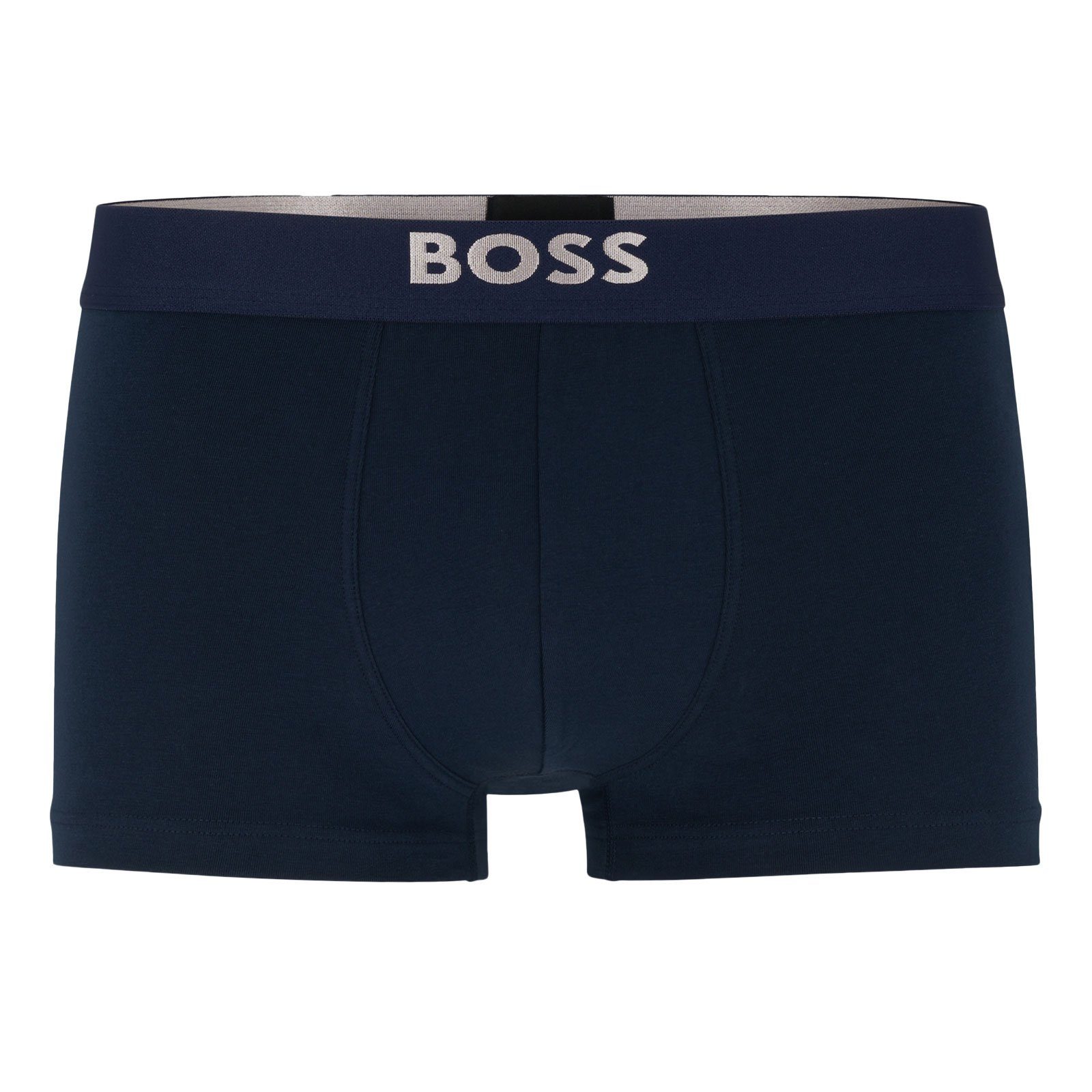 Diese Trunks überzeugen durch maximale Bewegungsfreiheit, eine enganliegende Passform und einen erstklassigen Materialmix. Dank der hautfreundlichen Baumwollmischung mit Elasthan-Anteil passen sich die Unterhosen perfekt an deine Körperform an. Außerdem bieten der komfortable Webgummibund, sowie der unterfütterte Frontbereich ohne Eingriff einen optimalen Halt. Für noch mehr Komfort wurden die Nähte sehr flach gearbeitet, auf eine störende Gesäßnaht wurde hingegen komplett verzichtet. Das auf dem Bund mittig platzierte Markenlogo und der Markenschriftzug mit sportivem Streifen am linken Bein, runden mit ihrem metallischen Glanz das unifarbene Design hervorragend ab.