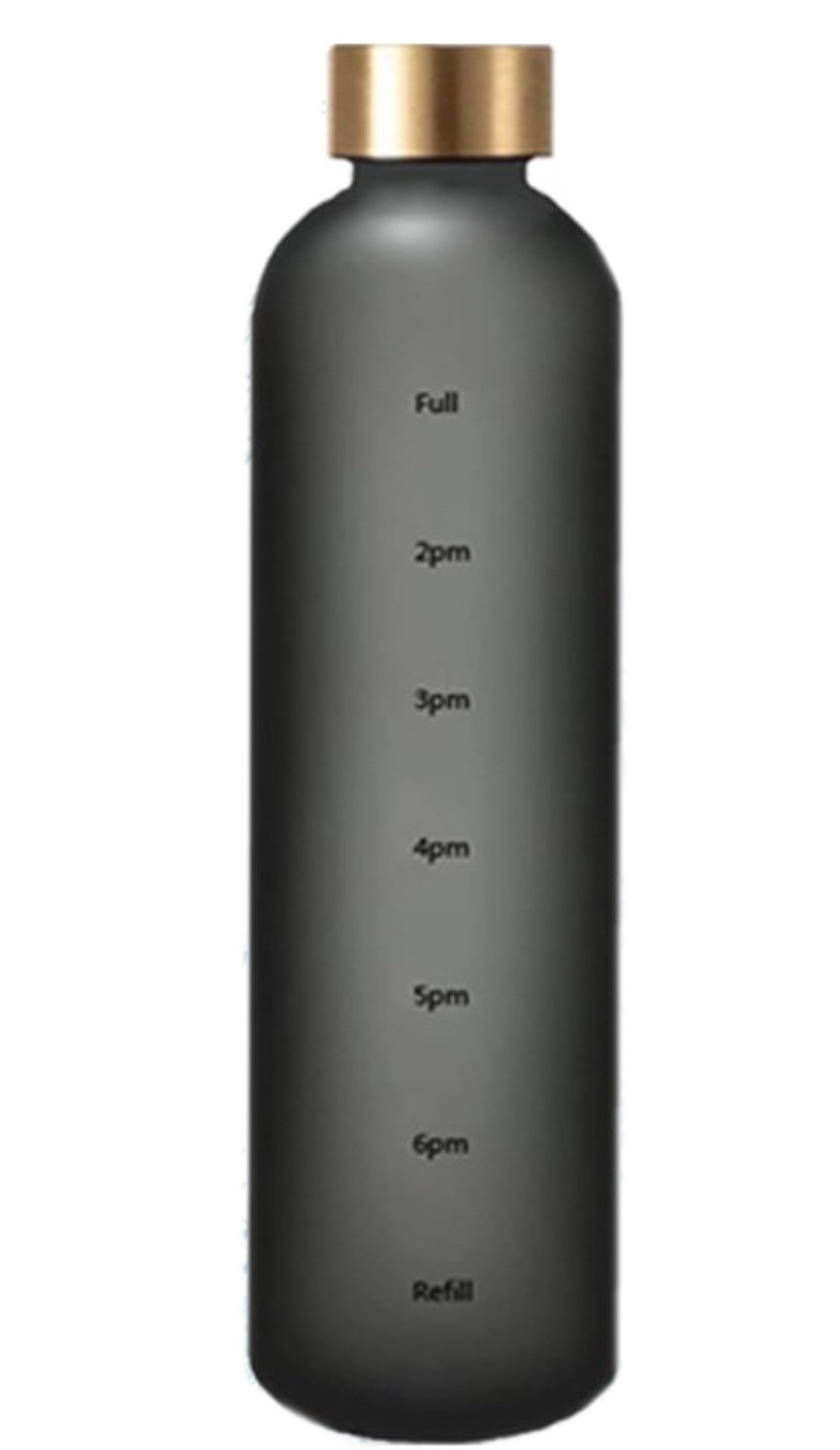 Dir fällt es schwer über den Tag ausreichend Wasser zu trinken? Dann ist unsere Trinkflasche mit einer Zeit Skala der ideale Helfer für Dich! Diese Trinkflasche ist ein echtes MODE-ACCESSOIRES - 3 coole Farbtöne, transparent mattierter Flaschenkörper außen mit goldfarbenem Schraubdeckel. Eine edle Trinkflasche | Wasserflasche | Sportflasche, auslaufsicher mit praktischer Trinkerinnerung! Auf der Rückseite unserer beliebten Wasserflasche befindet sich eine praktische Zeit-Markierung, diese Skala erinnert daran, den ganzen Tag über, die empfohlene Menge an Flüssigkeit zu trinken. Du kannst nicht nur die tägliche Flüssigkeitsaufnahme leicht verfolgen, sondern ermutigt Dich auch dran zu bleiben und mehr zu trinken. Die begehrte Trinkflasche besteht aus hochwertigem Tritan, ist also sicher BPA-frei, sprich: frei von schädlichen Weichmachern. Sie ist leichter als eine Glasflasche, langlebiger auch robuster als eine Plastikflasche. Sie ist wieder verwendbar, umweltfreundlich und bruchsicher, optimal für Kinder und Erwachsene. Unsere Trinkflaschen haben eine schlichte, doch stilvolle Mattoptik und einen edlen goldfarbenen Schraubverschluss. Der Deckel ist mit einem Silikonring versehen, diese innovative Technik verhindert das auslaufen von Flüssigkeiten und eignet sich somit für kohlensäurehaltige Getränke wie z.B. Limos. Die Flasche kann unbesorgt in der Tasche oder im Rucksack transportiert werden. Sie passt in die Getränkehalter im Auto oder Fahrrad. Perfekt für Fitnessstudio, Training, GYM oder alle anderen Sportarten und Outdoor Aktivitäten. Im Büro, in der Arbeit auch zu Hause unverzichtbar und ein Hingucker in den attraktiven Farben schwarz, weiß und rosa erhältlich. Um länger Freude am Produkt zu haben empfehlen wir die händische Reinigung, Hitze und aggressive Spültabs können die satinierte Optik angreifen. Empfehlenswert ist auch unsere Flaschen Reinigungsbürste. Unsere Trinkflasche mit Trinkmotivation ist das ideale Geschenk für Fitnessbegeisterte und gesundheitsbewusste Familien, Kollegen und Freunde.