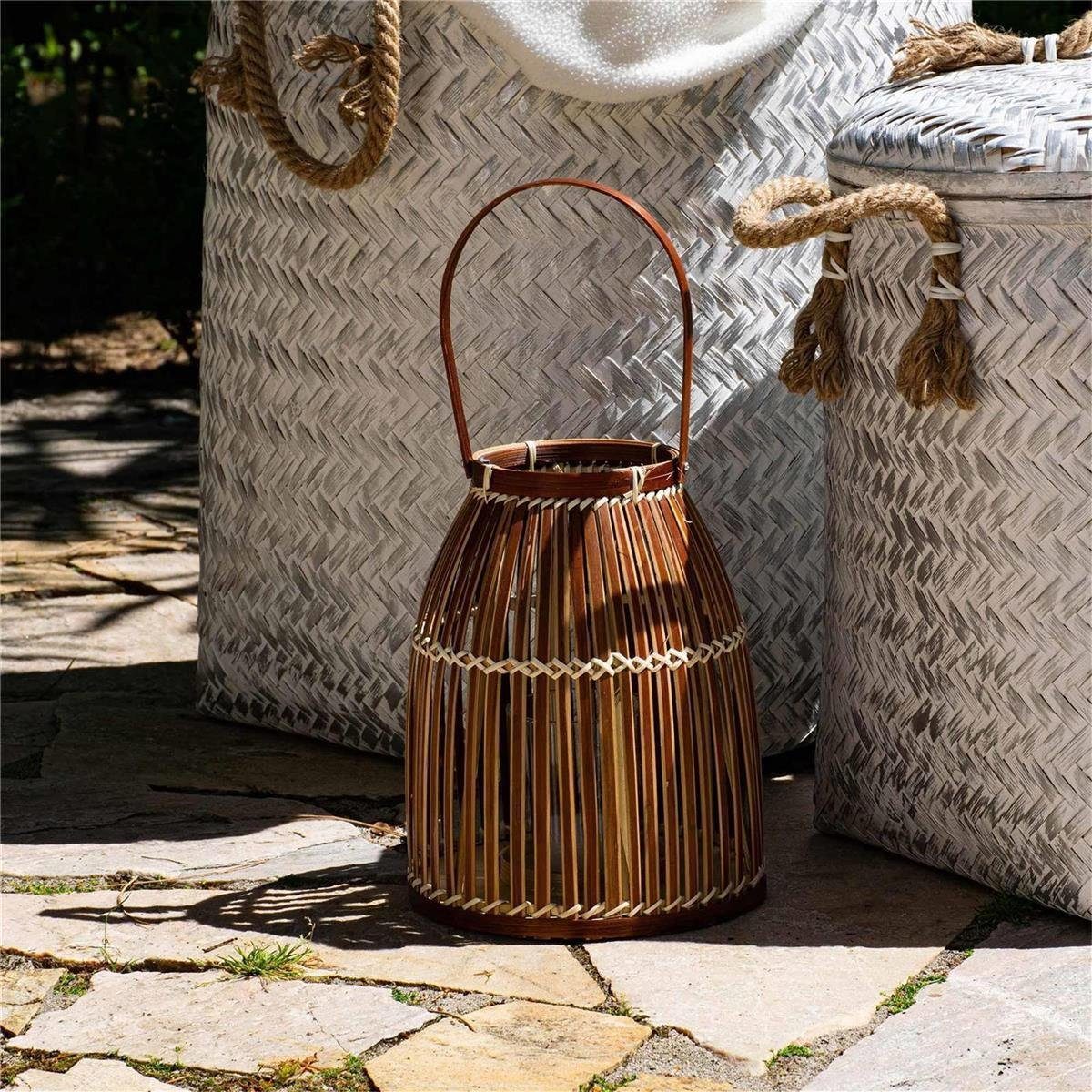 Verwandeln Sie Ihr Zuhause mit dem handgefertigten Bambus-Windlicht "Riposto" in einen Ort voller Charme und Wärme. Dieses exquisite Stück ist nicht nur ein Kerzenhalter, sondern auch eine beeindruckende Dekoration, die Ihr Wohnzimmer, Bad, Terrasse oder Balkon verschönert.