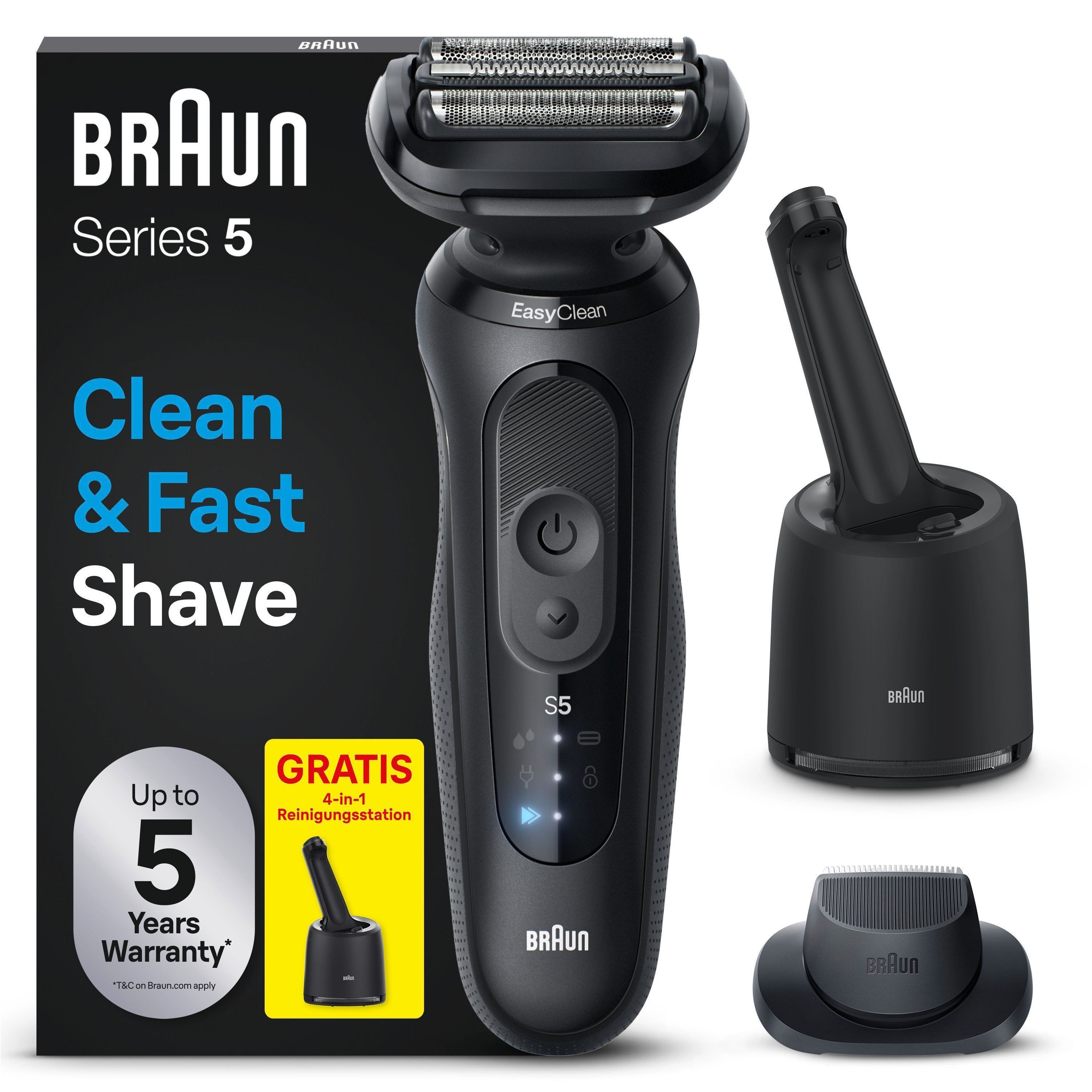 Lieferumfang | 1x GRATIS Reinigungsstation 1x Präzisionstrimmer-Aufsatz, 1x Reinigungsbürste 1x Reinigungskartusche 1x Schutzkappe 1x Series 5 Rasierer 1x SmartPlug |