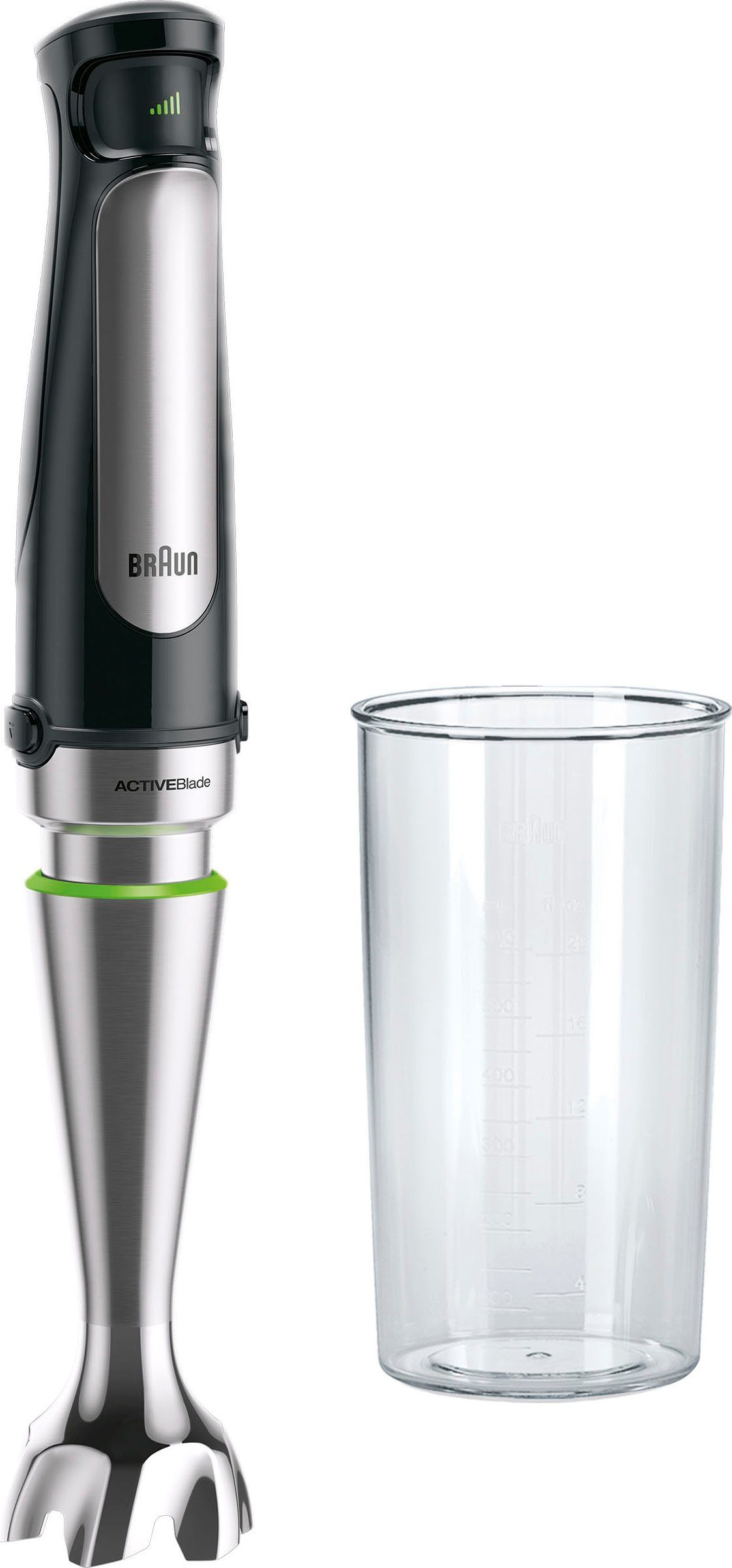 Впередe Vorteile | ACTIVEBlade Technologie Weltneuheit. Messerklinge bewegt sich nach oben und unten. Püriert selbst die härtesten Lebensmittel. 2,5-mal mehr an aktiver Schneidezone für 40% weniger Kraftaufwand. 55% weniger Sogwirkung für mühelose Bedienung und perfekte Kontrolle. EasyClick system Plus für weitere Zubehörteile Geschwindigkeitsstufen: SmartSpeed stufenlos variabel Mix- und Messbecher 600 ml, mit ml und fl oz Maßeinheiten Umdrehungen pro Minute: 13.600 |
