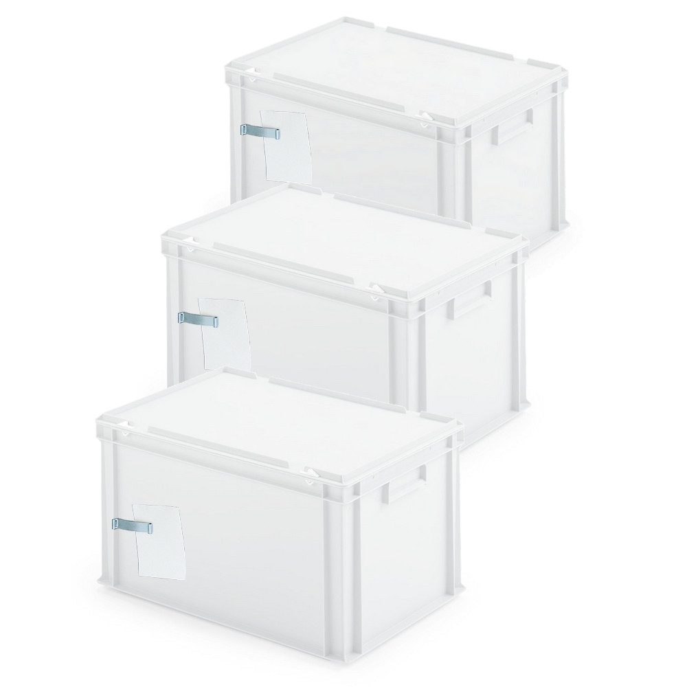 Die BRB Ordner-Archivboxen im praktischen Set (3 Stück) bieten Platz für je 7 A4-Ordner mit breitem Rücken und sind ideal für die langfristige und sichere Aufbewahrung wichtiger Dokumente. Hergestellt aus hochwertigem Polypropylen-Kunststoff (PP), sind die robusten Boxen staubsicher, unempfindlich gegen die meisten Säuren, Laugen und Fette sowie kältebeständig bis -20 °C und hitzebeständig bis +80 °C. Jede Box verfügt über einen Scharnierdeckel mit 2 Schiebeverschlüssen, der an 4 Stellen verplombbar ist, sowie Griffleisten für bequemes Handling. Inklusive Edelstahl-Zettelklemmer zur sicheren Kennzeichnung, der einfach auf die Behälterrippen aufgedrückt werden kann. Perfekt für eine ordentliche und sichere Archivierung!