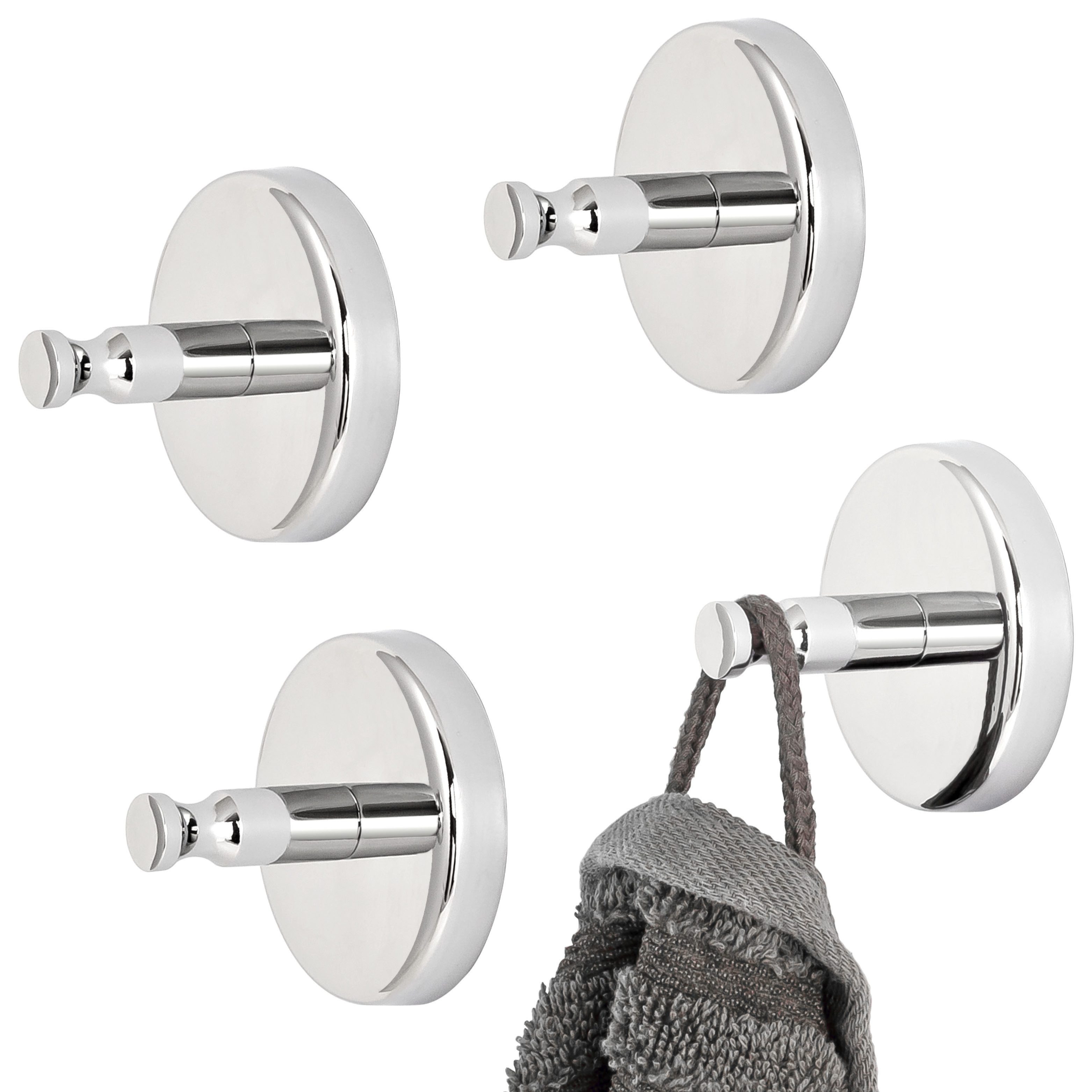 Die Vorteile auf einem Blick * elegant und zeitlos * einfaches Aufhängen und Entnehmen * praktisch und funktional für Bad und Küche * ideal für Handtücher, Geschirrtücher, Bademäntel und Badutensilien * zur Wandmontage mittels Schrauben * inklusive Befestigungsmaterial & Montageanleitung * Material: aus hochwertigem, rostfreiem Edelstahl (hochglänzend) verchromt * Abmessungen: ca. Ø 6 x 4,5 cm T
