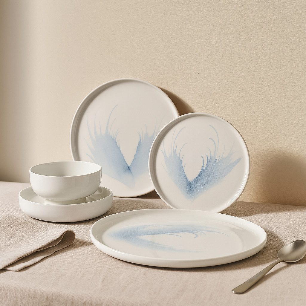 Das 25-teilige Geschirrset "Vertou" von Bricard kombiniert moderne Schlichtheit mit rustikalem Charme. Die leicht gesprenkelte Oberfläche in Weiß-Grau und mattweißer Optik verleiht jedem Gedeck eine natürliche Eleganz – perfekt für stilvolle Alltagsmahlzeiten und besondere Anlässe.