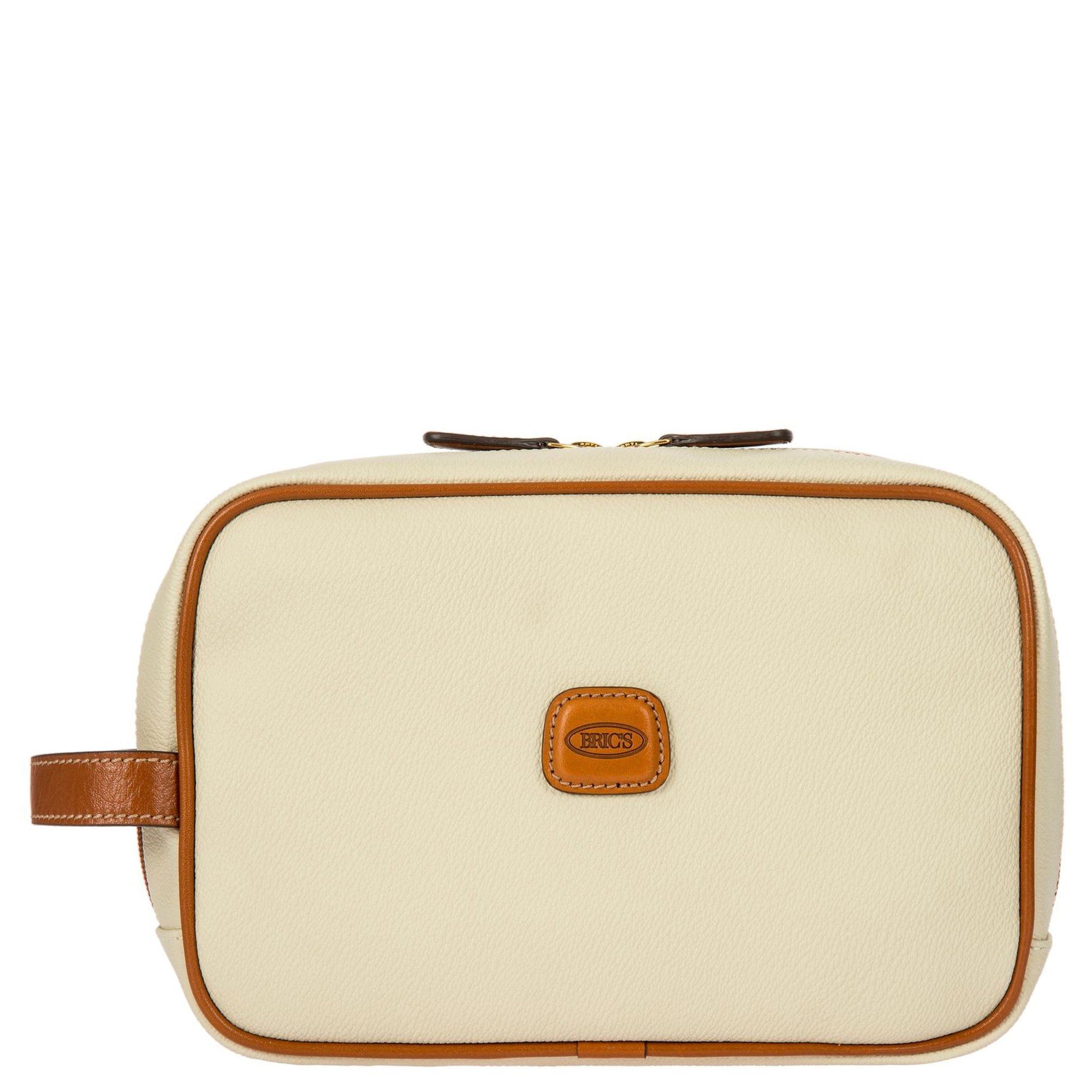 Entdecken Sie den eleganten Kulturbeutel aus der Kollektion Firenze in der stilvollen Farbe Creme. Dieser handgefertigte Begleiter verbindet ansprechendes Design mit praktischen Funktionen, ideal für jede Reise. Hergestellt aus hochwertigem, gaufriertem Kunstleder, besticht der Kulturbeutel durch seine langlebige und pflegeleichte Oberfläche, die mit edlen Besätzen aus pflanzlich gegerbtem Leder veredelt ist. Das wasserdichte Jacquardfutter mit dem Bric’s-Logo sorgt dafür, dass Ihre Kosmetikprodukte sicher und übersichtlich verstaut werden können. * Hauptfach: Ausgestattet mit einem praktischen Zweiwege-Reißverschluss für einfachen Zugriff * Innenausstattung: Ein Reißverschlussfach und ein Netzfach bieten zusätzlichen Stauraum und Ordnung * Tragekomfort: Der seitliche Tragegriff ermöglicht eine bequeme Handhabung Mit einem Volumen von 4 Litern und einem Gewicht von nur 0,40 Kilogramm ist dieser Kulturbeutel der perfekte Reisebegleiter, der sowohl Funktionalität als auch Stil vereint. Genießen Sie die Kombination aus Eleganz und Praktikabilität mit dem Kulturbeutel aus der Firenze-Kollektion.