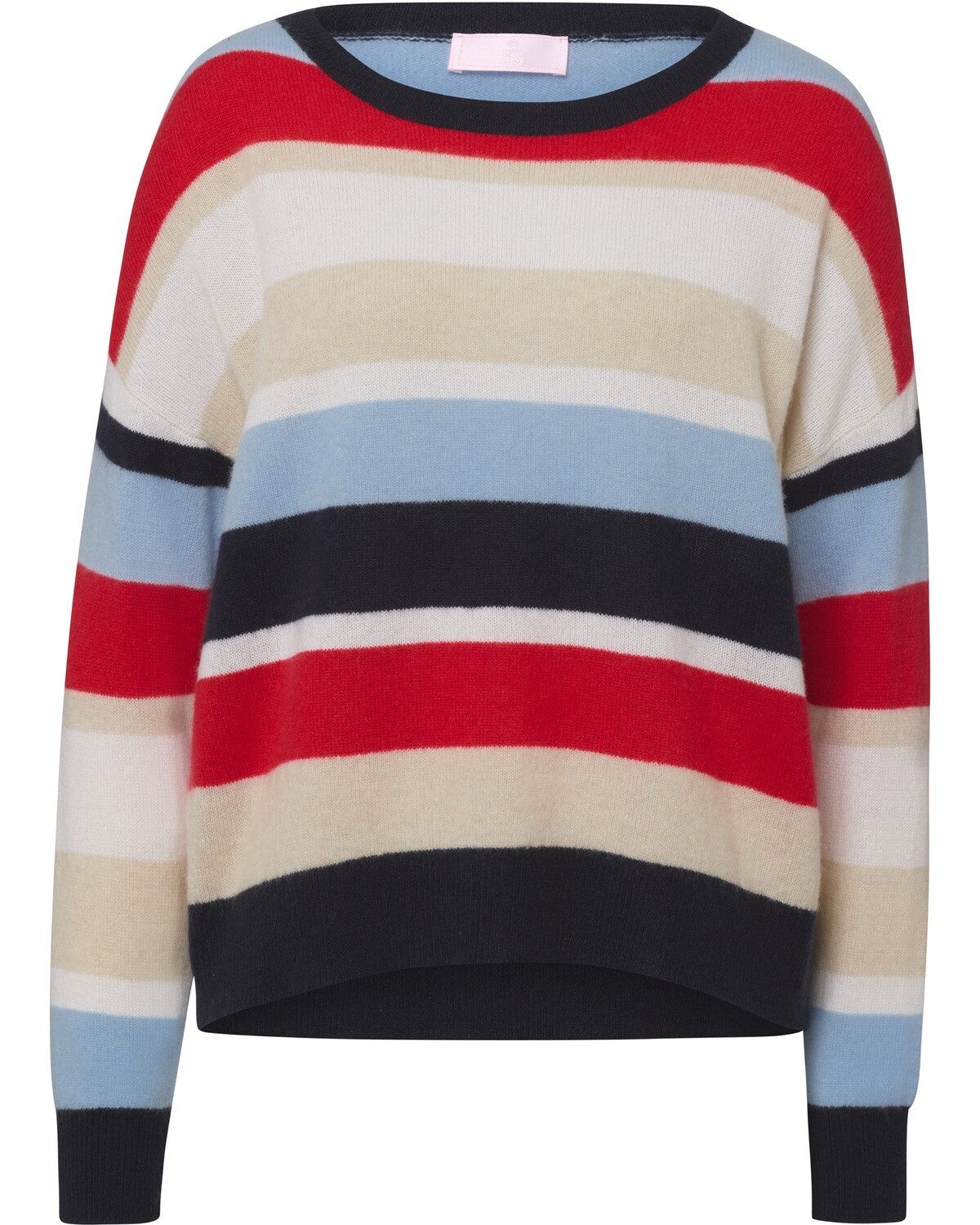 Der Damen Kaschmir Rundhalspullover von Brigitte von Schönfels besticht durch sein elegantes Streifendesign und die luxuriöse Weichheit von reinem Kaschmir. Fein gestrickt, bietet er ein angenehmes Tragegefühl und zeitlosen Stil. Der klassische Rundhals-Ausschnitt und die langen Ärmel machen ihn vielseitig kombinierbar. Dank der natürlichen temperaturregulierenden Eigenschaften des Kaschmirs eignet sich der Pullover ideal für kühlere Sommerabende und Frühlingstage. Der gerade Schnitt sorgt für eine harmonische Silhouette. Ein hochwertiges Kleidungsstück für anspruchsvolle Modekenner. Oberstoff: 100% Kaschmir. Damit Sie lange Freude an Ihrem Kleidungsstück haben, folgen hier Tipps zur Pflege: - vor dem Waschen stets das Pflegeetikett beachten - vor dem Waschen sämtliche Häkchen, Druckknöpfe usw. schließen - die Maschine darf nicht zu stark befüllt werden - Kleidungsstück auf links drehen - das Kleidungsstück im Hand oder Wollprogramm waschen - ausschließlich Wollwaschmittel verwenden - so verhindern Sie Knötchenbildung und Verfilzung - nach dem Waschen auf einem Frotteehandtuch ausbreiten und liegend trocknen - nicht wringen oder kneten, da das Kleidungsstück sonst einlaufen oder verfilzen kann - bei manueller Handwäsche kaltes Wasser verwenden, da auch hier die Gefahr besteht, dass das Kleidungsstück einlaufen oder verfilzen kann Pilling ist ein natürlicher Effekt bei Kaschmir-Produkten. Am besten lassen sich die Knötchen mit der Hand ablösen. Mit der Zeit lässt die Bildung von Pilling nach, da sich alle losen Faserteilchen dann gelöst haben.