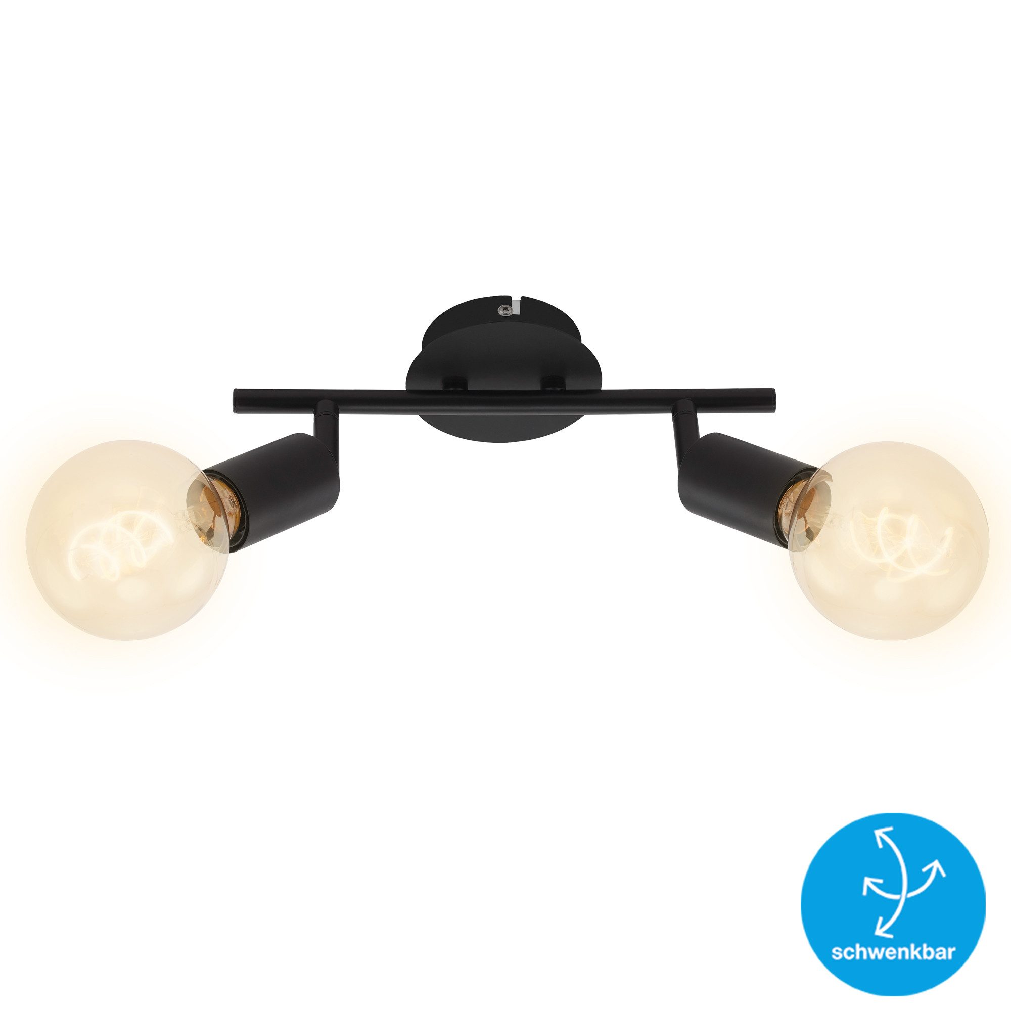 Diese stilvolle, 2-flammige Spot-Deckenleuchte in schwarzem Metall vereint schlichtes Retro- und Vintage-Design. Sie passt perfekt in unterschiedlichste Räume und zieht mit ihrem eleganten Look schnell die Blicke auf sich.