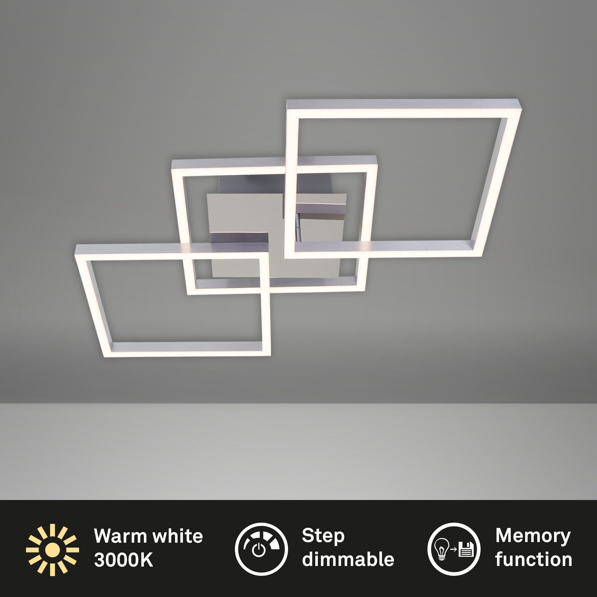 Die Lampe bietet eine stufenweise Dimmbarkeit (100% - 50% - 20%), sodass Sie die Helligkeit ganz bequem über den Lichtschalter ändern können.