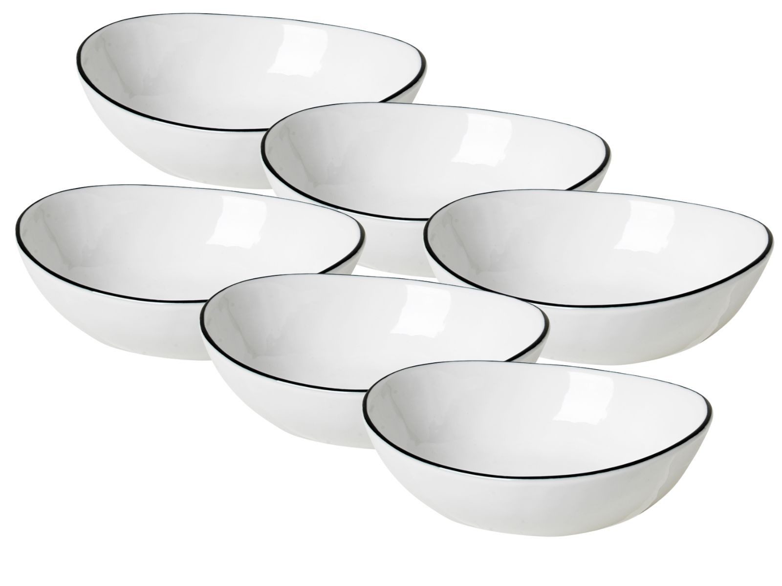 Diese Schalen sind ideal für vielseitige Anwendungen, sei es für Vorspeisen, Desserts, kleine Snacks oder Beilagen. Die schlichte weiße Grundfarbe kombiniert mit dem charakteristischen schwarzen Rand der SALT Kollektion verleiht den Schalen einen eleganten und gleichzeitig modernen Look. Das minimalistische Design fügt sich nahtlos in verschiedenste Einrichtungsstile ein und bringt nordische Frische auf den Tisch.