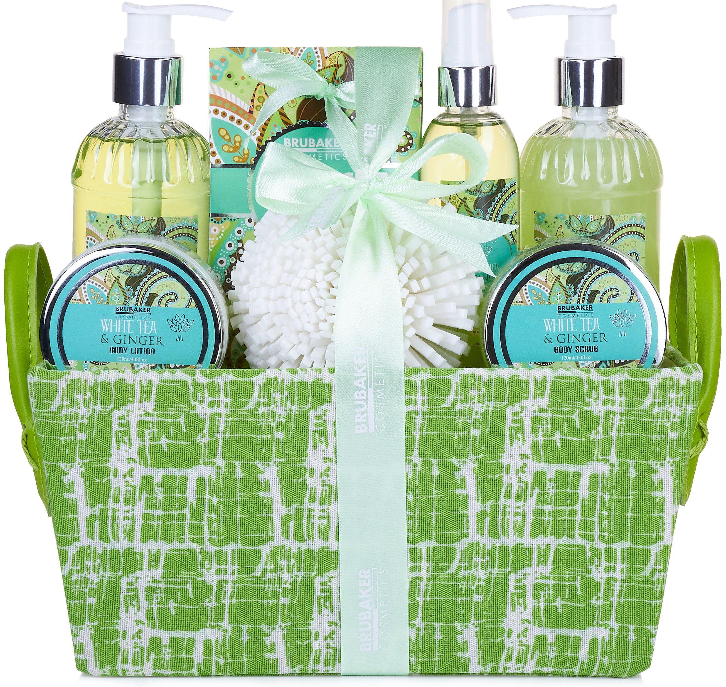BRUBAKER Cosmetics Bade- und Dusch Set "White Tea & Ginger" - Weißer Tee und Ingwer Duft - 8-teiliges Geschenkset