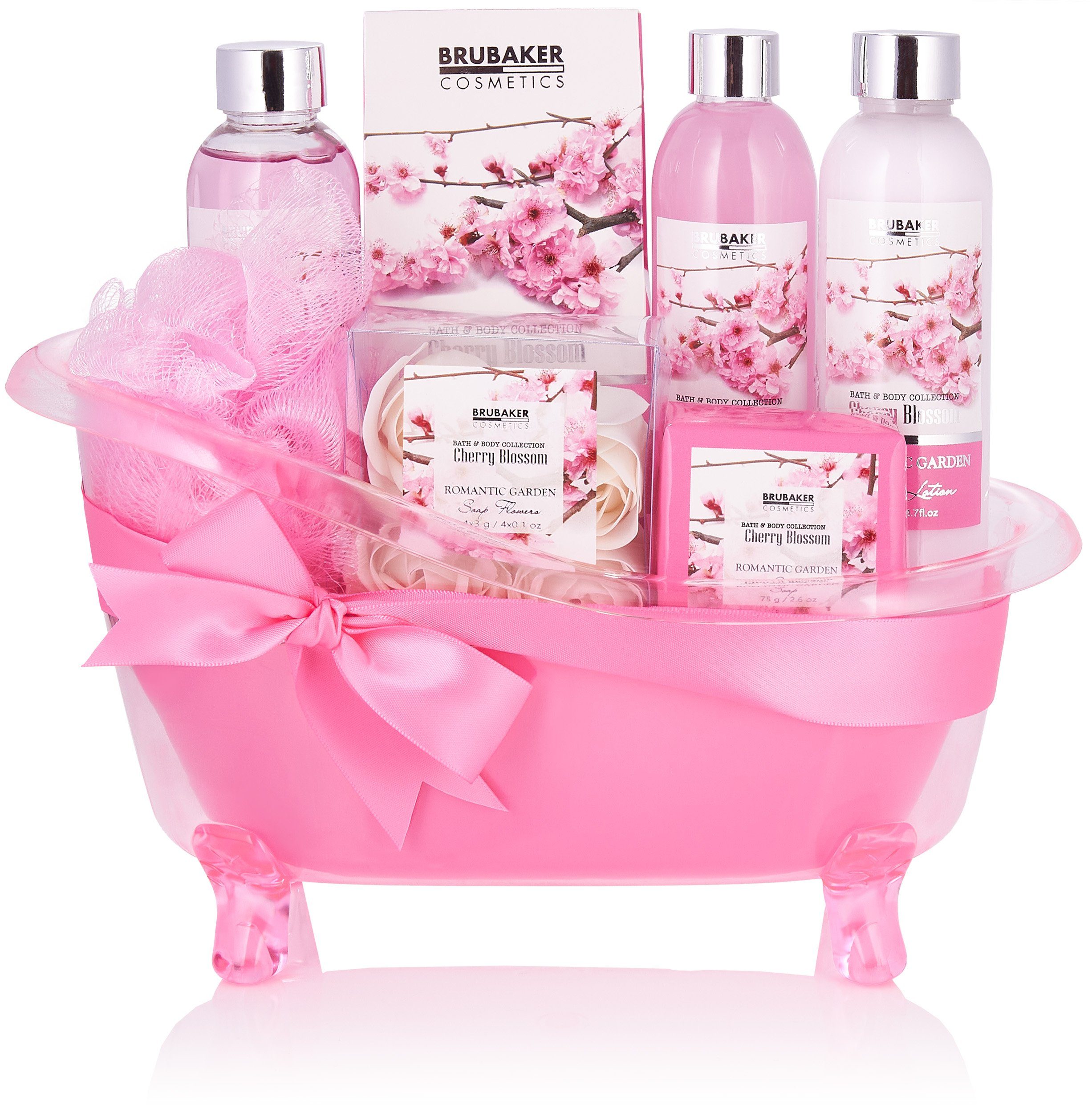 BRUBAKER Cosmetics Bade- und Dusch Set Kirschblüte - 8-teiliges Geschenkset in dekorativer Wanne