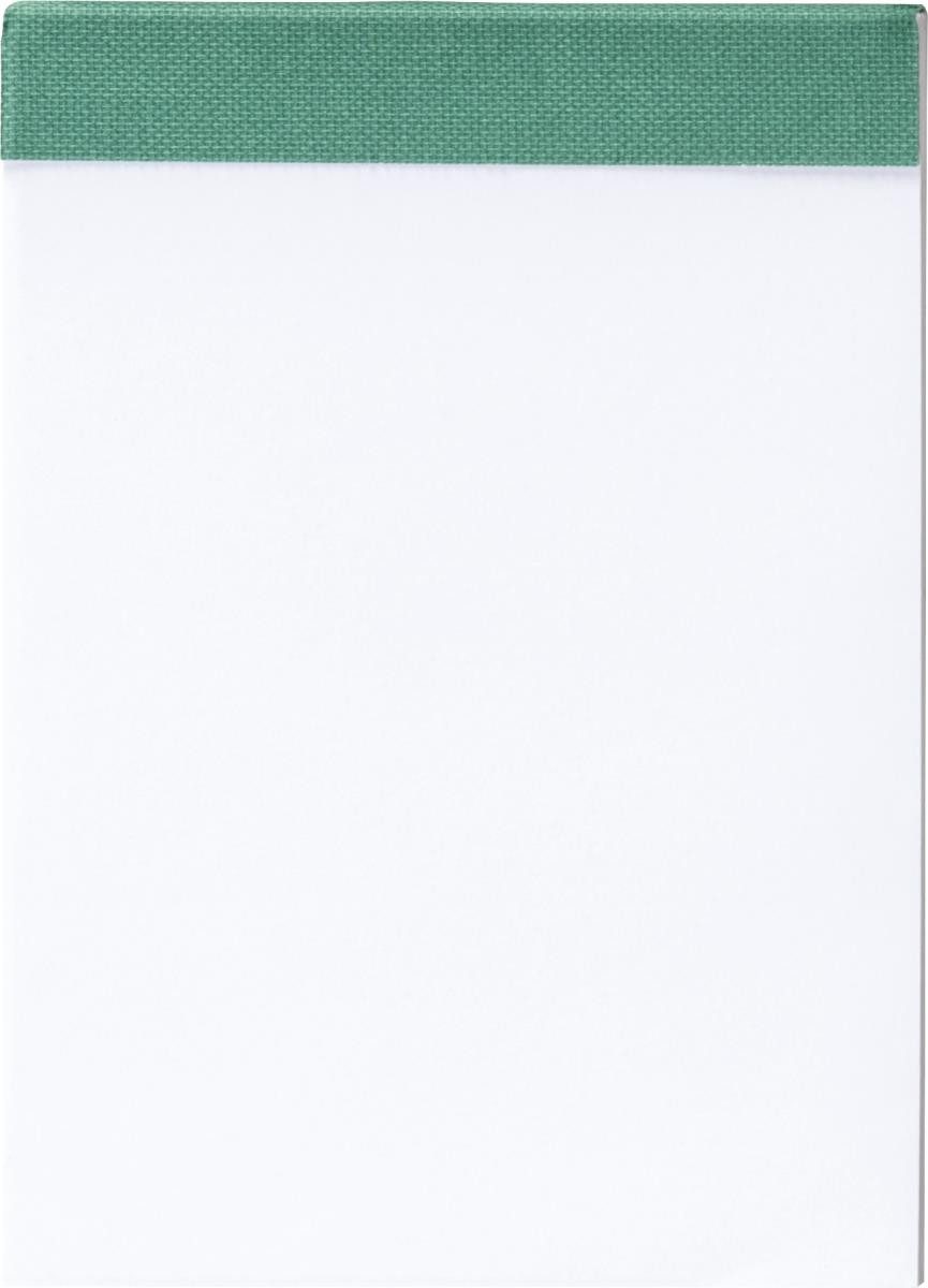Notizblock, A7, 50 Blatt, unliniert, grün Format: A7 unliniert 50 Blatt 60 g/m², Qualitätspapier, Drahtheftung, Microperforation Farbe: grün Gewebe-Einfassung