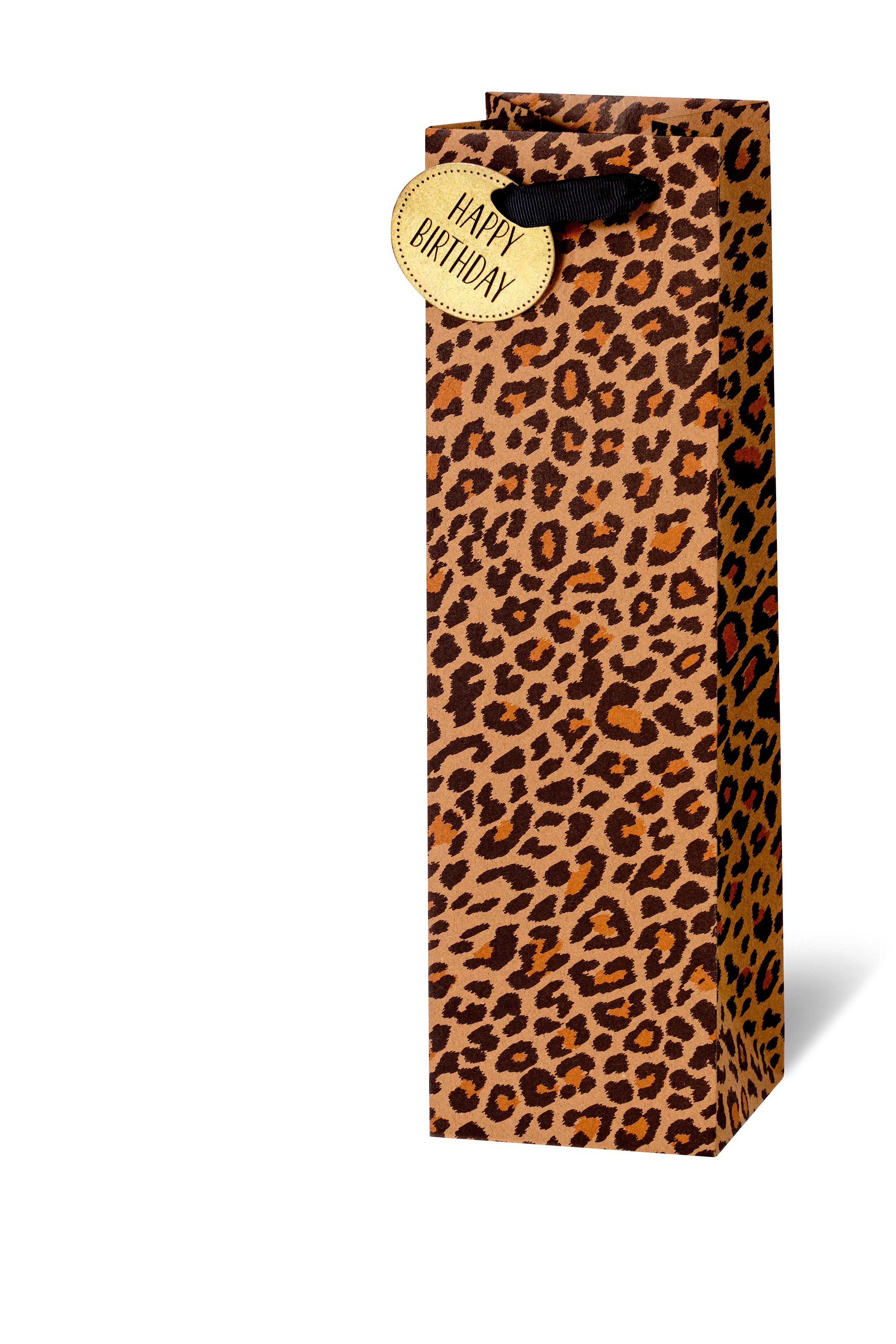 Grußkarten Tasche - Flaschen Format - 36x10,5x10 cm - BSB - Leo Muster - Happy