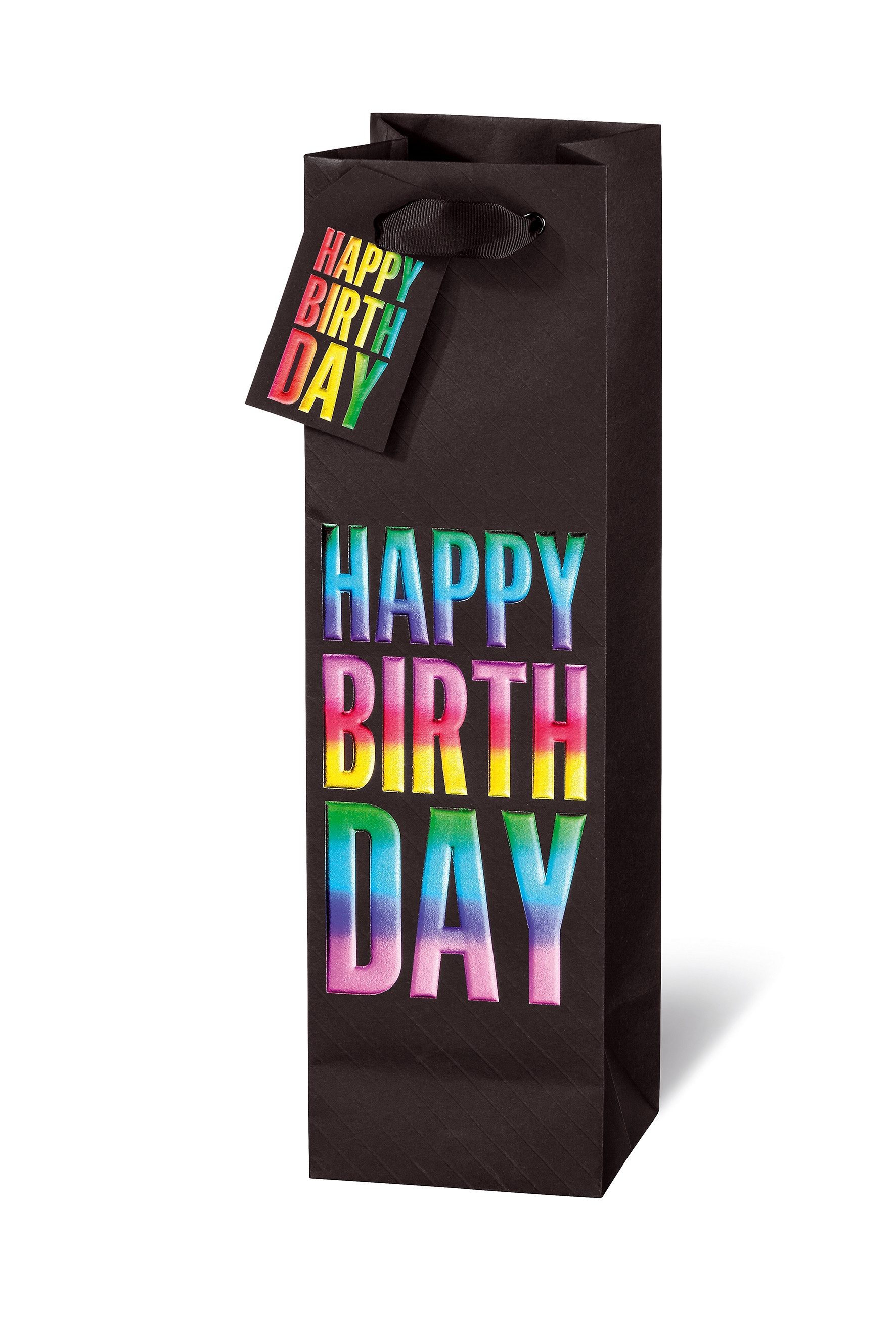 BSB Grußkarten Tasche - Flaschen Format - 36x10,5x10 cm - Rainbow - Happy Birthday