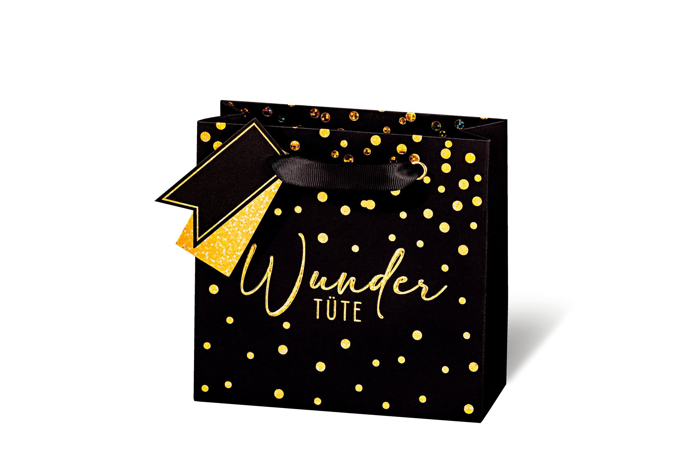 BSB Grußkarten Tasche klein - CD-Format 14,5x15x6 cm - schwarz mit goldenen Punkten