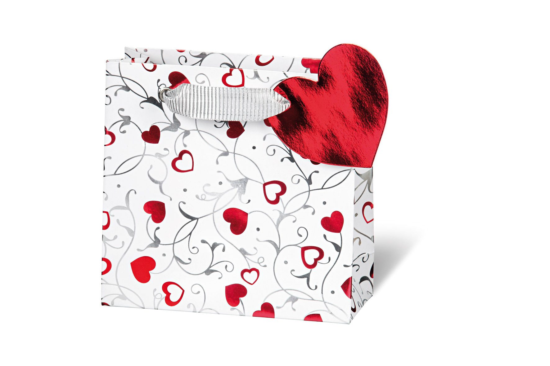 Grußkarten Tasche klein - CD-Format 14,5x15x6 cm - Silver Hearts - rote Herzen