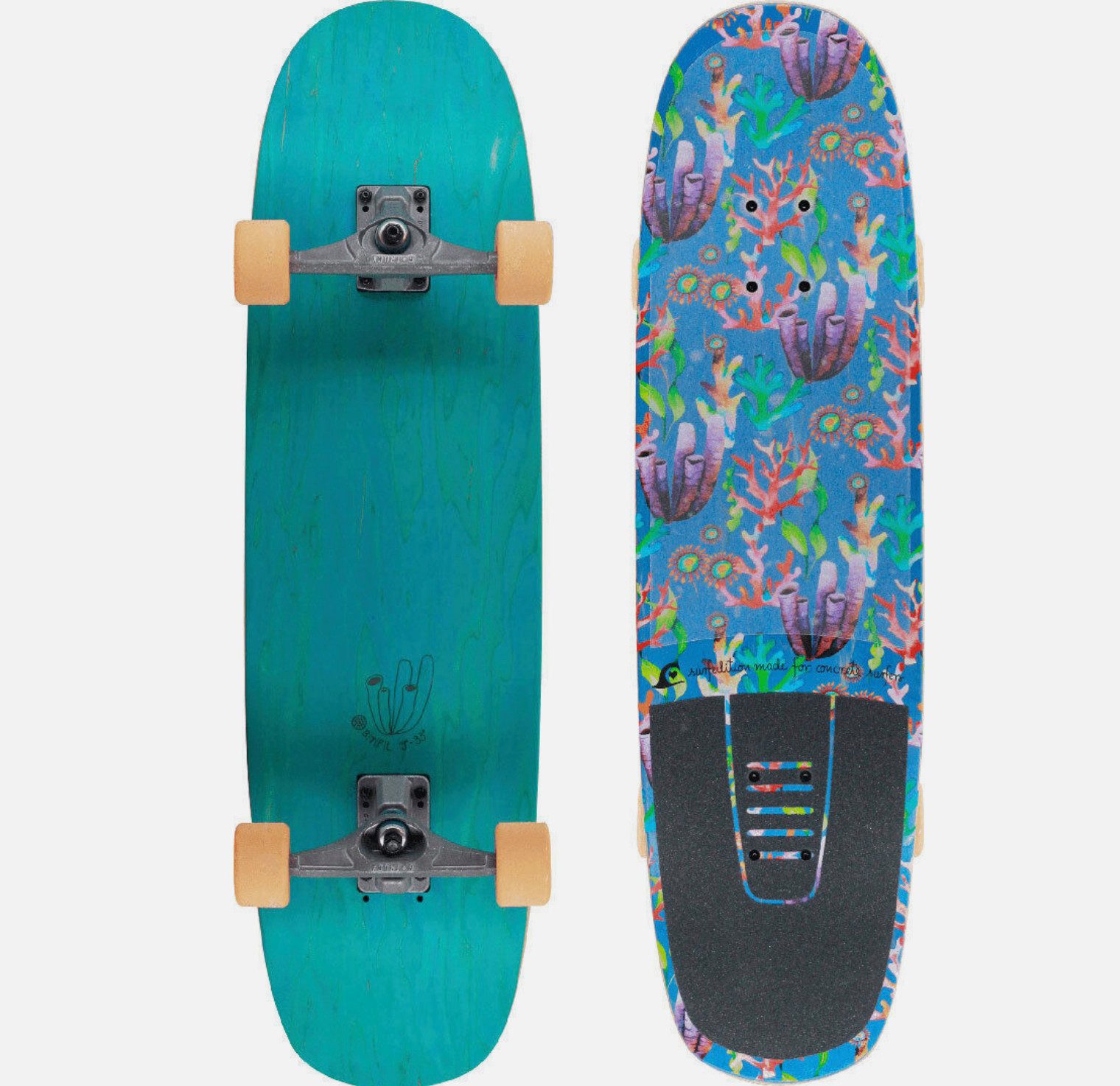 Wenn du auf der Suche nach der perfekten Mischung aus Surfen und Skaten bist, dann ist dieses Surfskate mit Double Kick Deck genau das Richtige für dich. Ausgestattet mit einem Deck, welches an ein Skateboard erinnert, bietet dieses Board eine einzigartige Mischung aus Style, Kontrolle und endlosen Skating-Möglichkeiten. Durch seine großzügigen Kicks ist das BTFL Surfskate Liv zum Skaten im Flachem als auch in Skateparks oder Bowls geeignet. Überwinde die Grenzen des Surfskatens und erweitere Deine Riding-Skills um Ollies, 180s, Reverts oder Airs. Dank der individuell einstellbaren G-Truck Achse kannst du das Lenkverhalten dieses Boards auf vielerlei Art einstellen: Nutze die härtere Einstellung für scharfe Turns oder um von A nach B zu kommen. Lockere die Achsen für ein Surf-ähnliches, flowiges Fahrverhalten in der Bowl oder in flachen Ebenen. Dieses Board ist ideal für alle, die auf der Suche nach der perfekten Kombination aus Surfskate und Skateboard sind. Die Ober- und Unterseite des Decks sind mit blau gefärbten Holzschichten versehen. Die Oberseite des Decks ist zusätzlich mit einem farbenfrohen Muster bedruckt, das dich immer an den Ozean erinnern wird, wenn du auf deine Füße schaust. Das BTFL Surfskate Liv ist ideal geeignet, um den Asphalt zu surfen und gleichzeitig easy von A nach B zu gelangen.