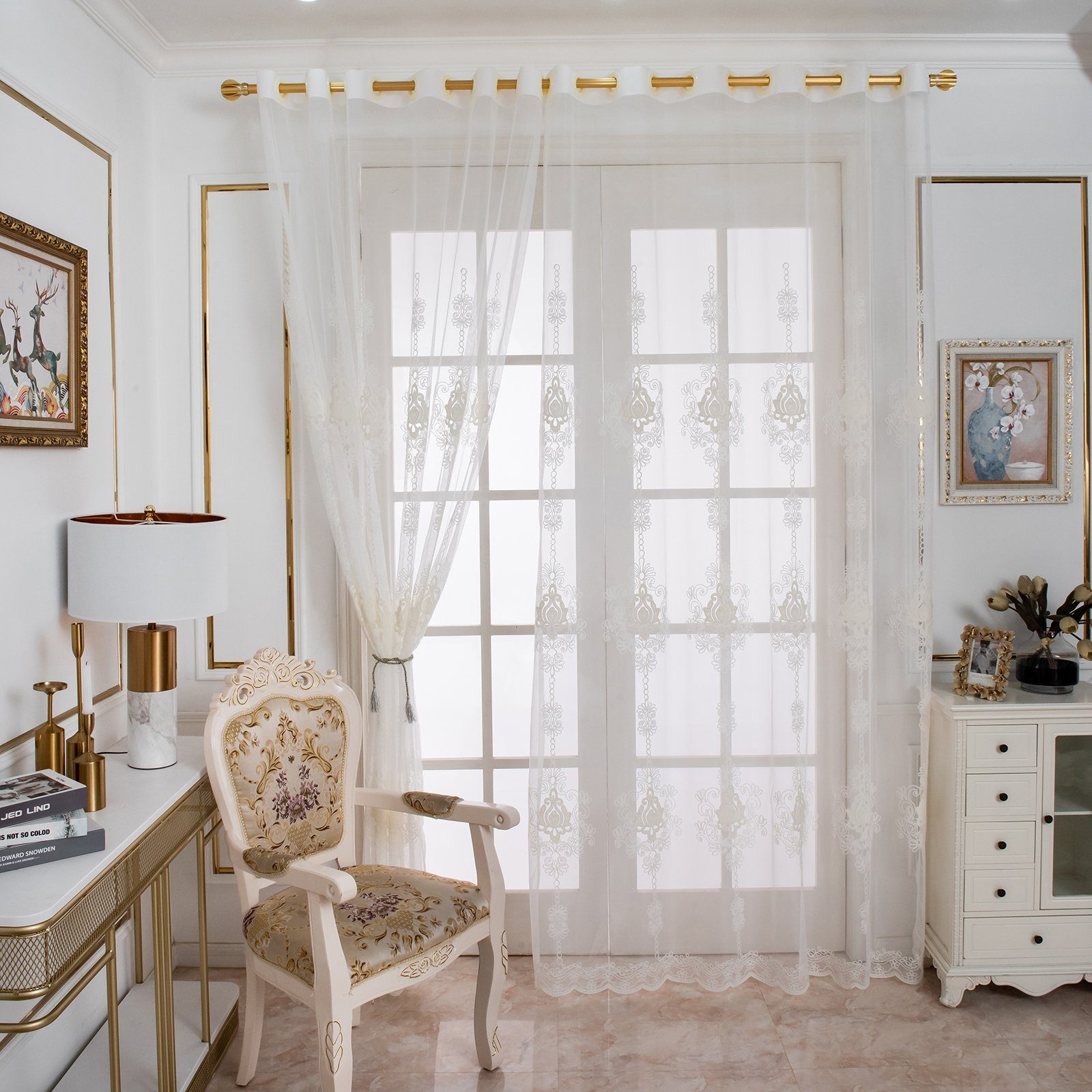 Material | 1 Stück,Voile Vorhang Blumenstickerei |