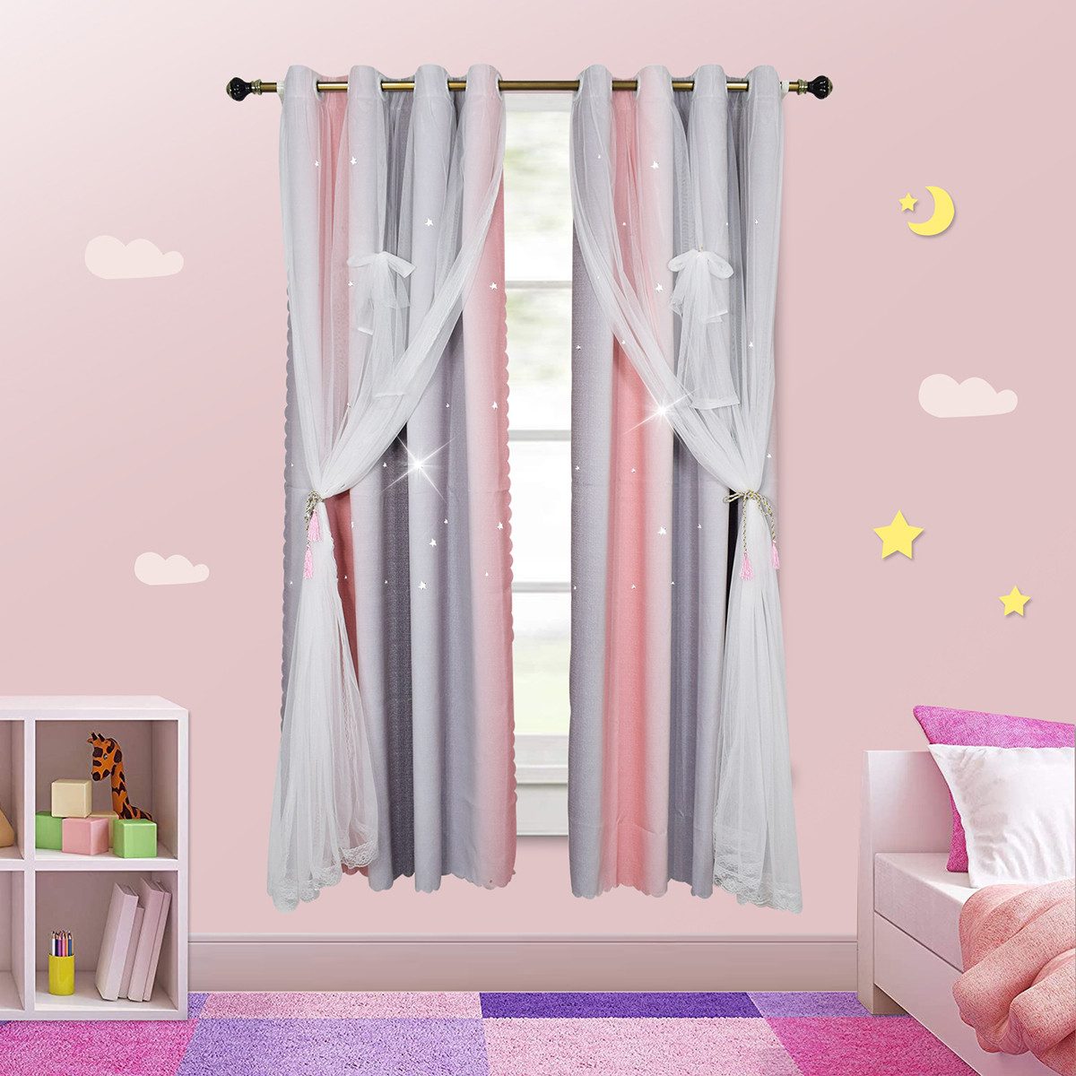 Deshalb haben wir diesen Vorhang mit hohlen Sternen unter vielen Vorhängen ausgewählt. Es besteht aus 100% Polyester faser und der Vorhangstoff hat eine Farbverlaufsfarbe, wodurch der gesamte Raum prinzessinisch aussieht.