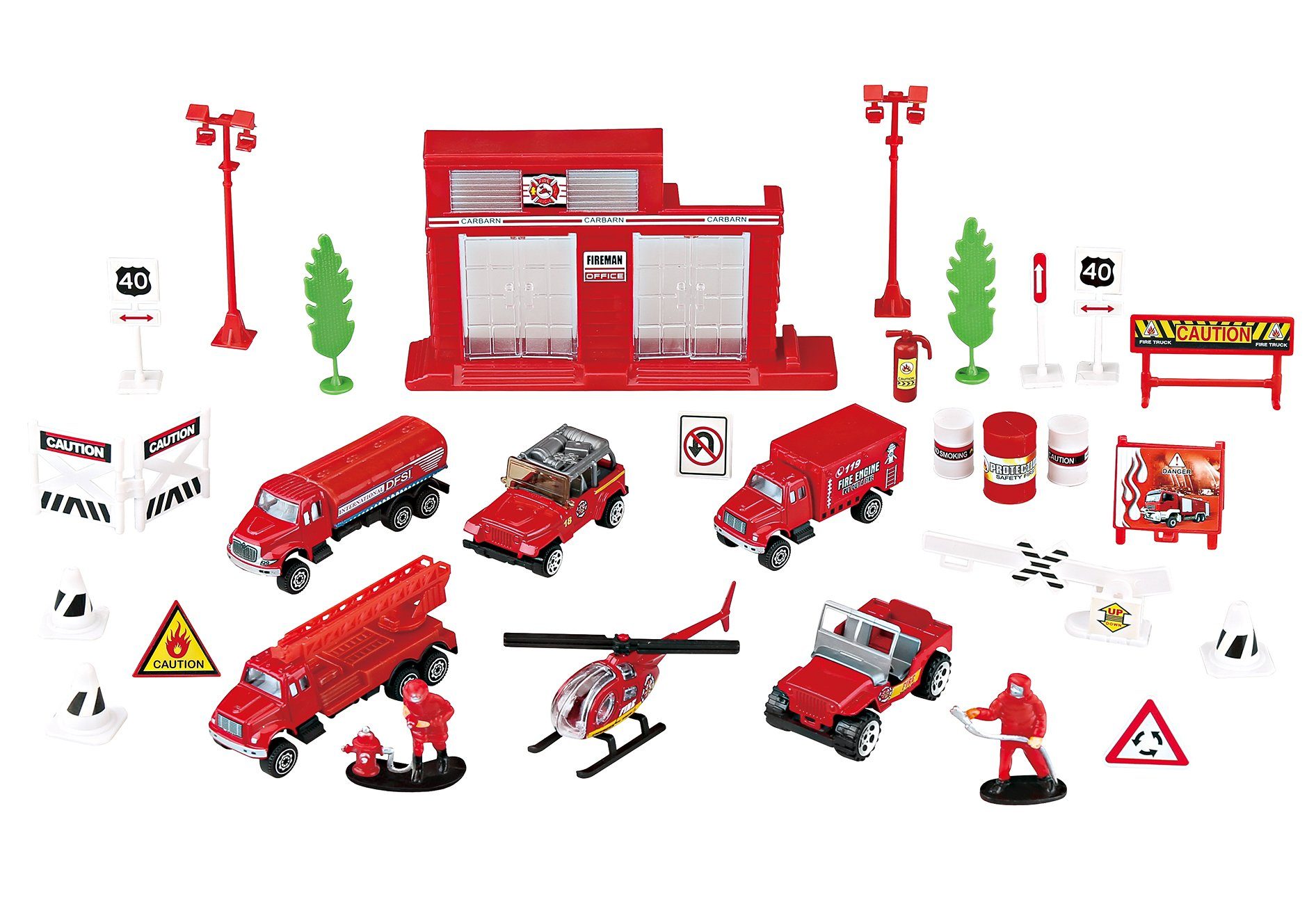 Kinder lieben alles, was motorisiert ist. Mit diesem coolen Spiel-Set Polizei- und Rettungsstation bestehend aus 35 Teilen werden Sie garantiert jeden kleinen Motorfan begeistern. Die diversen Polizeifahrzeuge und Rettungswagen sind größtenteils aus Metall, das im Die-Cast Metal-Verfahren, also mittels einer Metall-Guß-Schablone, hergestellt wurde. Daher die naturgetreue Wiedergabe mit den vielen kleinen Extras, die an den Spielzeugautos zu sehen sind. Der Rest ist aus strapazierfähigem Kunststoff gefertigt. Zu dem Set gehören zwei uniformierte Polizisten, ein Gebäude sowie viele Straßenschilder, Absperrgitter, Bäume u.v.m. Das Spielzeug-Set ist sowohl fürs Kinderzimmer als auch den Outdoor-Bereich geeignet. Eines ist Gewiß, das beschenkte Kind wird sich sicher riesig über sein neues Auto-Spielset freuen. Ob zum nächsten Geburtstag, Weihnachten oder zu Ostern, wir wünschen Ihnen viel Spaß beim Schenken!