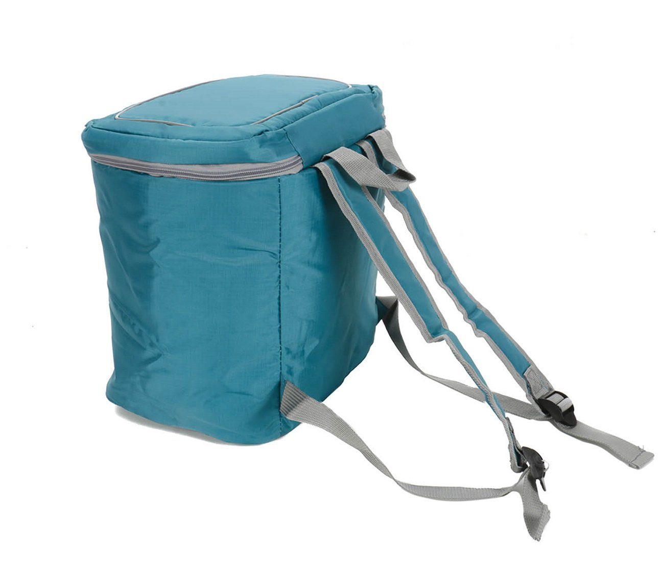 Wenn Sie gerne wandern, zum Picknick ins Grüne fahren oder mit der Familie schwimmen gehen darf guter Proviant nicht fehlen. Diese praktische Kühltasche im stylischen aquamarin verfügt über einen komfortablen, breiten Textil-Tragegriff. Für längere Wege oder schweren Inhalt, wie Getränkeflaschen, lässt sich die Thermotasche als Rucksack nutzen. Die beiden Schulterriemen sind extra gepolstert und lassen sich nach Bedarf verlängern. Die Abdeckung der Kühltasche ist sowohl von links als auch von rechts mit einem Reißverschluss zu öffnen. So brauchen Sie immer nur die Seite aufziehen, wo das von Ihnen gerade Gewünschte steht. Eine extra Netztasche außen eignet sich für Taschenlampe, Apfel oder die Wasserflasche beim Wandern. Innen ist Ihr neuer Kühltaschen-Rucksack mit isolierendem Polyethylen ausgekleidet, das Äußere ist aus pflegeleichtem Polyester. Die leuchtende Farbe ist schon von Weitem sichtbar. Das Soft-Design lässt sogar noch zusätzlich Spielraum für Besteck, Servietten oder was immer Sie mögen. Natürlich ist Ihr neuer Kühlrucksack auch ideal zum Einkaufen. Nach Gebrauch lässt sich Ihre neue Kühltasche ganz flach zusammenlegen und so auf kleinstem Raum aufbewahren. Daher ist der Kühlrucksack auch ein toller Reisebegleiter, der wenig Platz im Koffer wegnimmt. Ob Kaltgetränke, Salate, Obst oder leckere Baguettes, Ihre neuen Ruchsack-Kühltasche ist die ideale Ergänzung für Ausflüge, lange Autofahrten oder den nächsten Einkauf. Wir wünschen immer gut gekühlte Speisen und Getränke unterwegs!