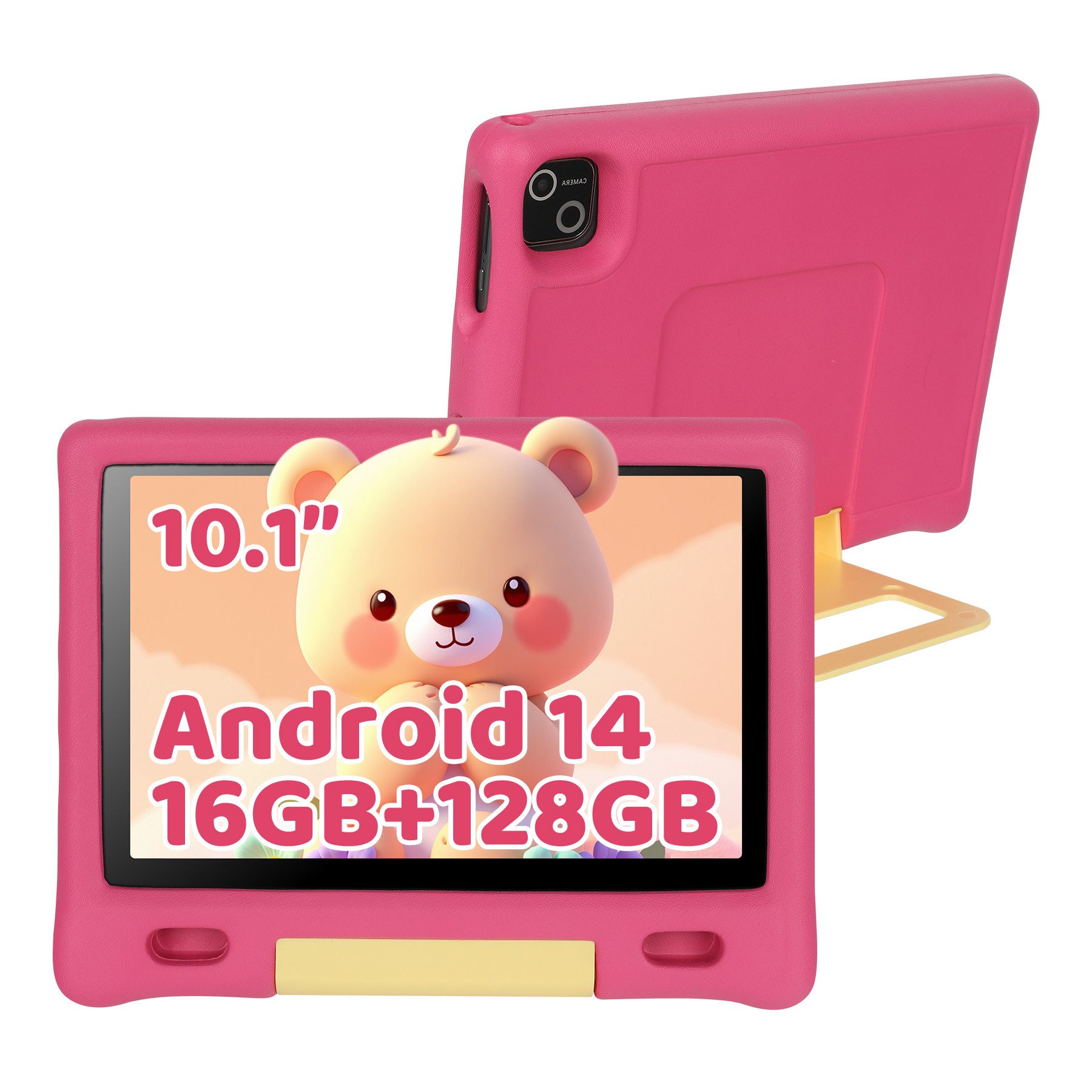 Kinder Tablet 10 Zoll Octa-Core Android 14, 16GB+128GB (1TB TF), Kindersicherung, WiFi 6 Bluetooth 5.3, Widevine L1 mit Kindersicheres Gehäuse