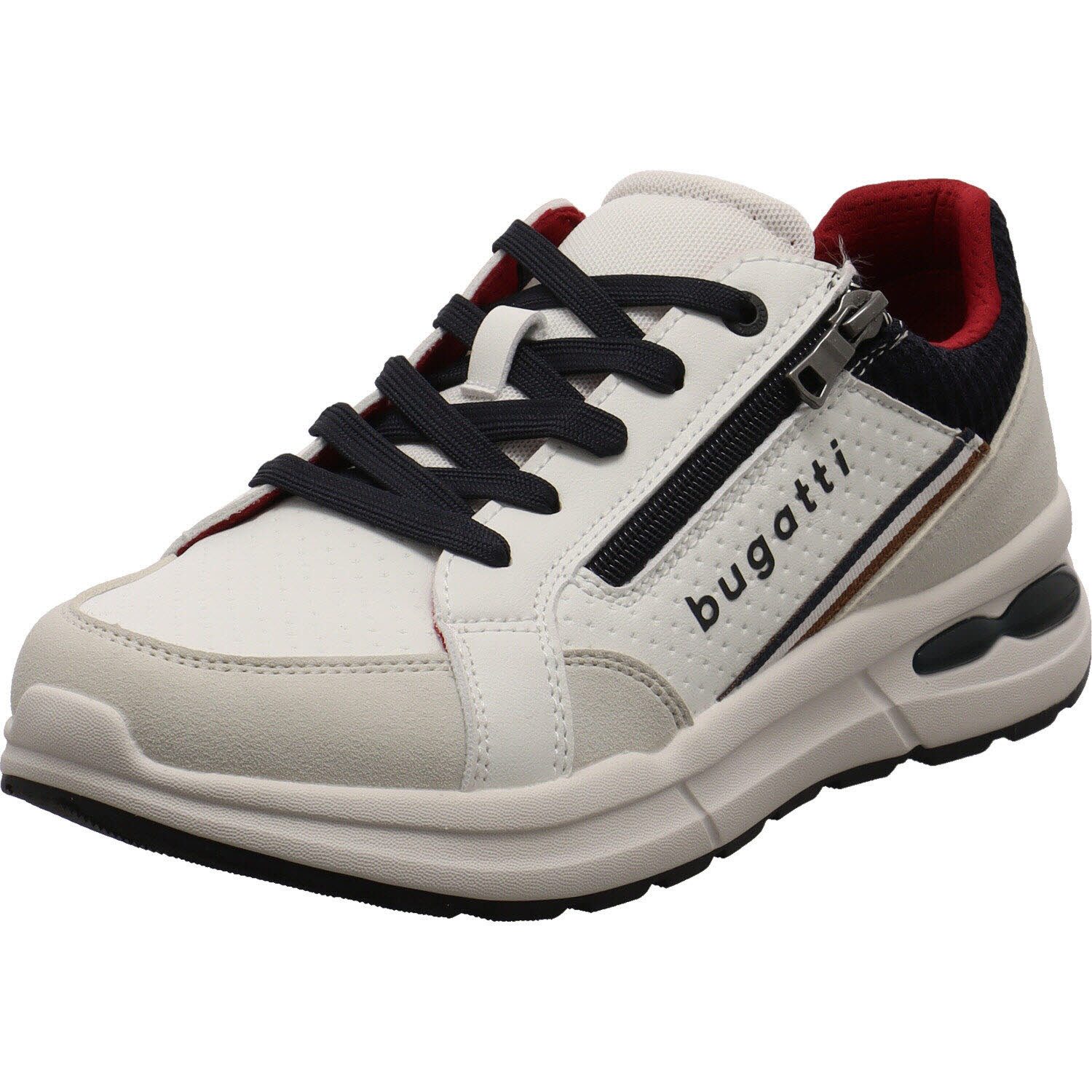Ein neues Modell für alle Bugatti Liebhaber. Das Modell Sandar ist ein modern, sportlicher Herren Sneaker. Er wurde aus einem gekonnten Mix aus Kunstleder und Textil in Weiß gefertigt. Dabei ist er mit einer individuellen Prägung und dem Marken Logo an der Seite verziert. Der Schaft ist mit einem Textil Mesh Einsatz in Blau versehen und angenehm weich gepolstert. Durch den seitlichen Reißverschluss ist der Einstieg ganz leicht und mit der Schnürung kannst du die Passform auf deine Bedürfnisse anpassen. Die Senkel sind ebenfalls in Blau und das Innenfutter Rot, so entsteht eine tolle Farbkombination, die dem Sneaker sein modernes Design geben. Die Innensohle ist als Wechselfußbett gearbeitet, so können eigene Einlagen verwendet werden. Ein neuartiges Sohlenmaterial macht diesen Schuh super leicht. Ein toller Sneaker für den Alltag.