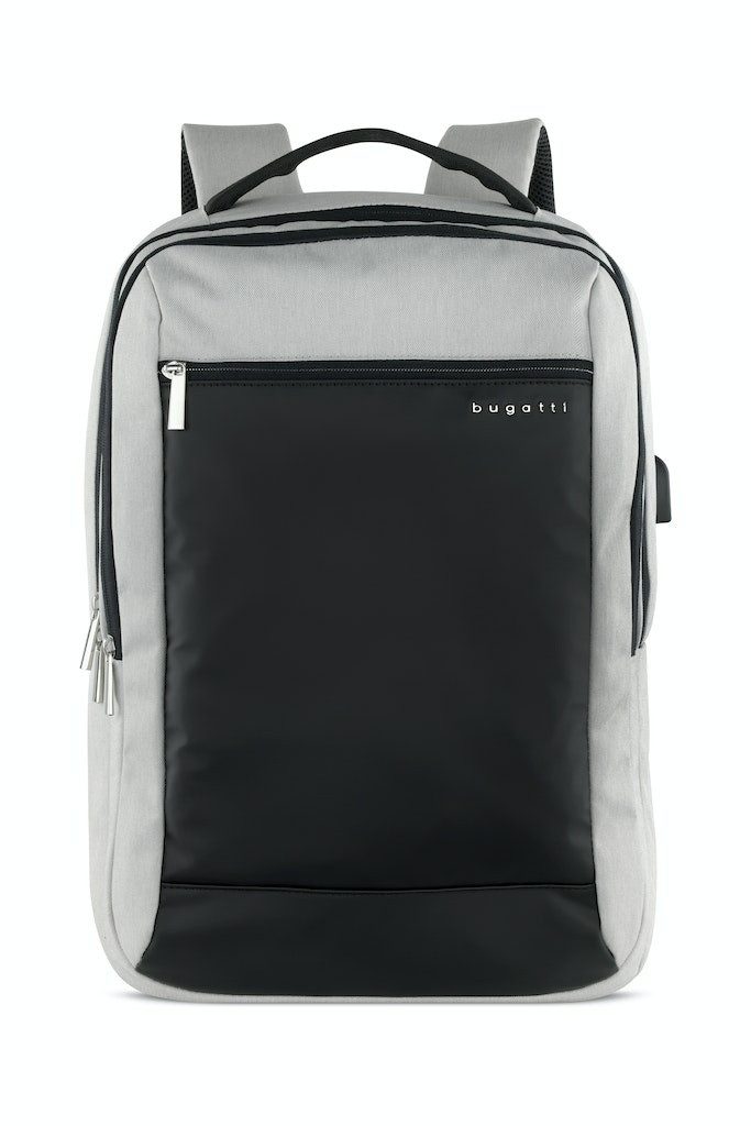 Der Business-Rucksack von bugatti fällt durch sein geringes Gewicht und modernes Design direkt ins Auge. Doch was ihn wirklich begehrenswert macht, sind seine zahlreichen nützlichen Funktionen. So ist zum Beispiel ein RFID-Schutz eingearbeitet, welcher das Auslesen Ihrer persönlichen Daten auf verhindert. Ein integrierter USB-Anschluss ermöglicht es, eine Akku-Powerbank (nicht enthalten) sicher im Inneren der Tasche zu verstauen, um damit ein außen angestecktes Smartphone zu laden. Unterteilt ist der Rucksack in zwei Hauptfächer, die unter anderem ein gepolstertes Notebookfach sowie zahlreiche Einsteckmöglichkeiten bereitstellen. Eine wahre Erleichterung für den Business-Alltag!