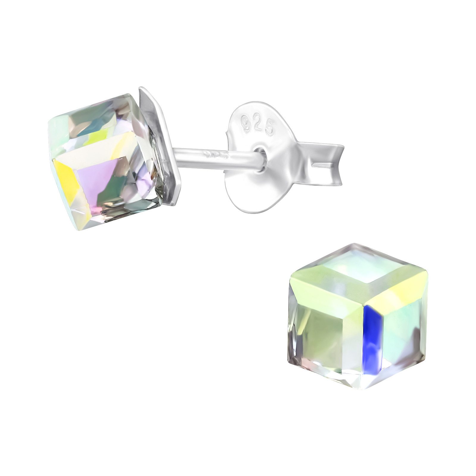 Edle Echtsilber Ohrstecker mit echtem europäischem Kristall im Würfel Design - LA CRYSTALE™ Echte europäische Kristalle feinster Qualität