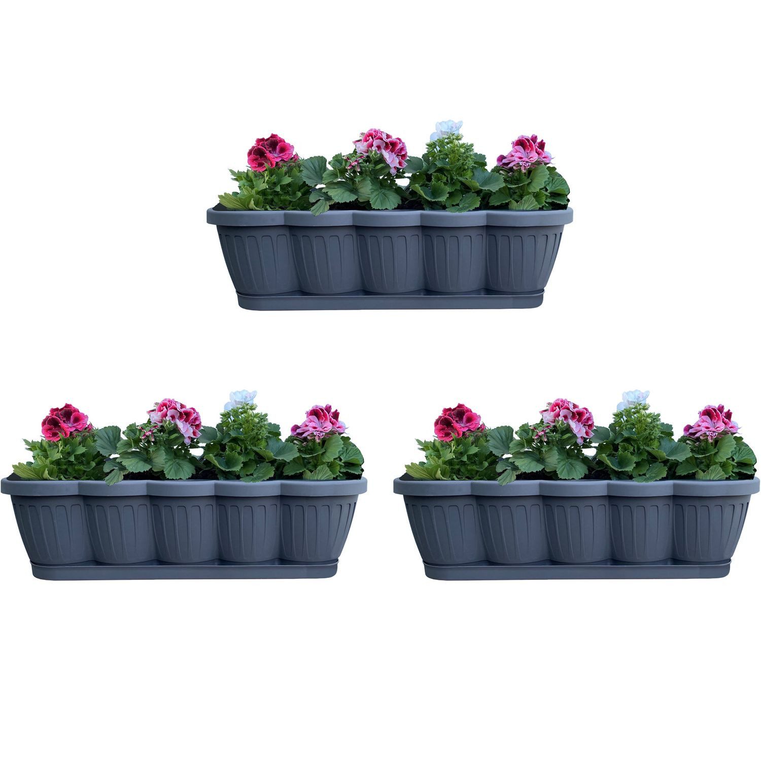 3er Set Blumenkästen mit Bewässerungsuntersetzer für Balkon und Garten