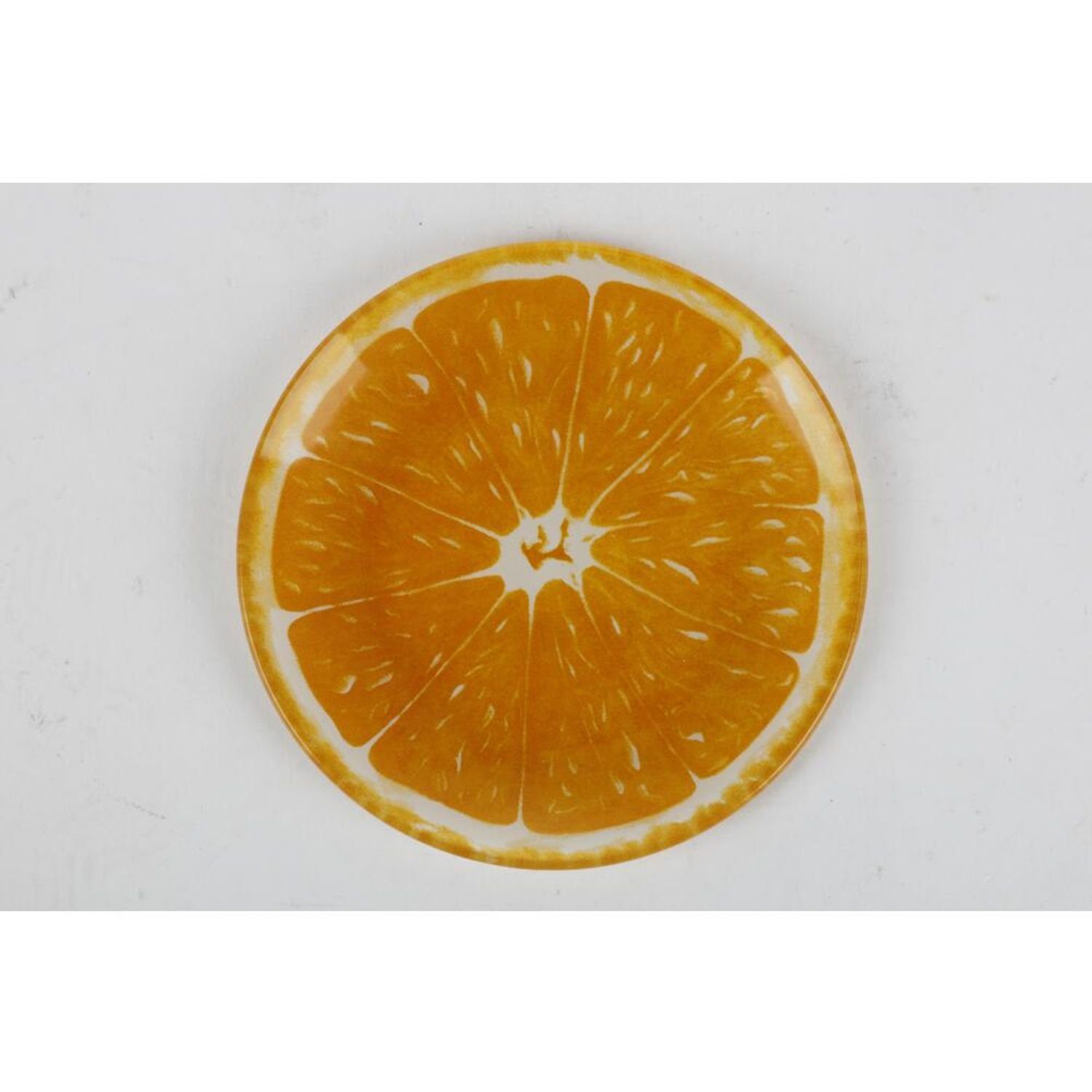 Der Glasteller ist in den Ausführungen Orange und Melone erhältlich. Sie erhalten je 6 Teller jeder Ausführung.
