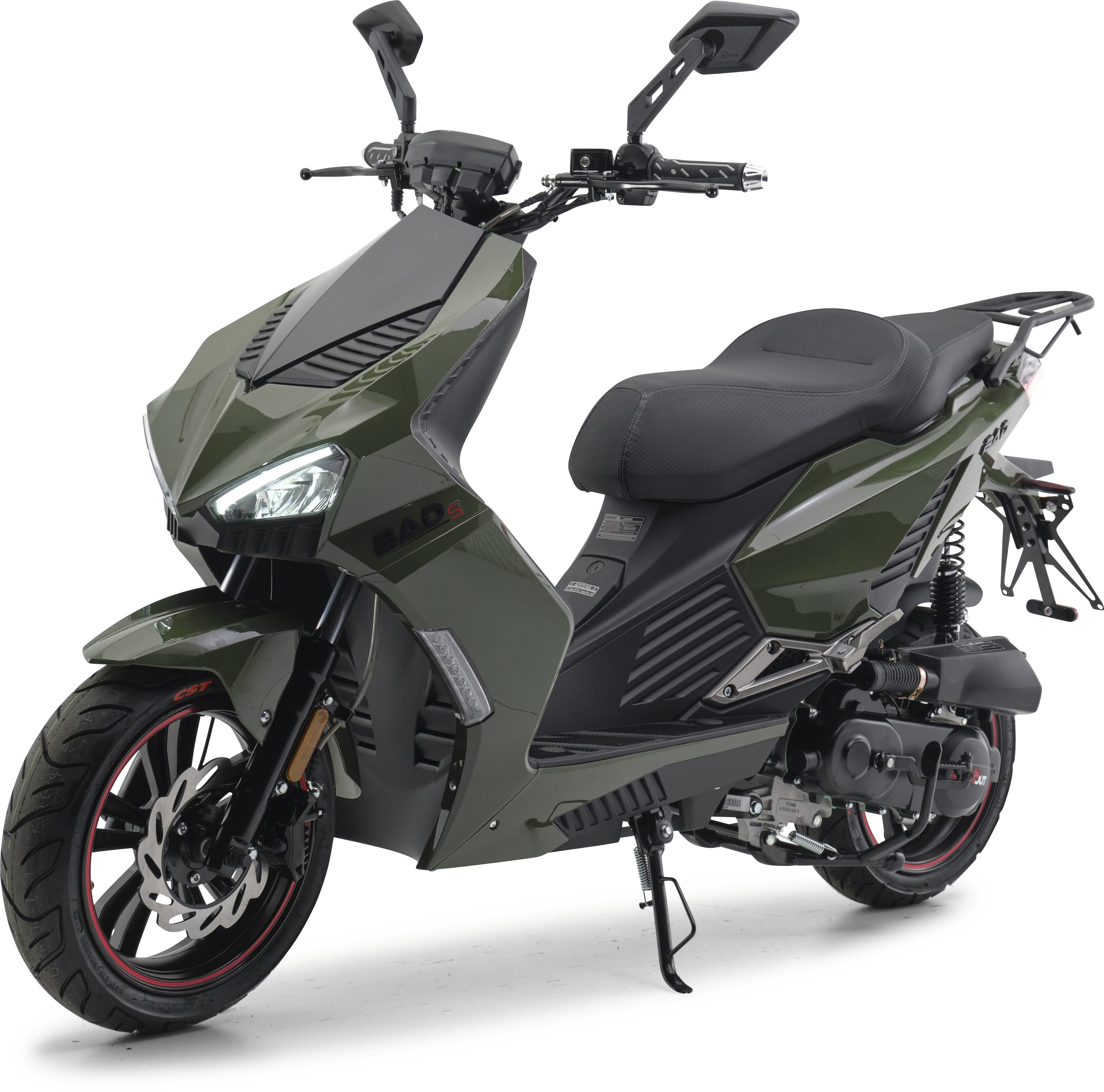 Für seine 50ccm beschleunigt das Modell auf den ersten Metern ordentlich, aber nicht zu schnell. Das sorgt für mehr Kontrolle und ein gutes Gefühl beim Starten. Einmal in Schwung, befindest Du dich dann umgehend auf der Überholspur und erreichst schnell die 45 km/h betragende Spitzengeschwindigkeit. Die hydraulischen Scheibenbremsen vorne und hinten sind für das nötige Sicherheitsgefühl verantwortlich, die LED-Beleuchtung dafür, dass Du zu später Stunde gut siehst und noch besser gesehen wirst. Serienmäßig gehören außerdem eine Alarmanlage und „Keyless Go“ zur Ausstattung.