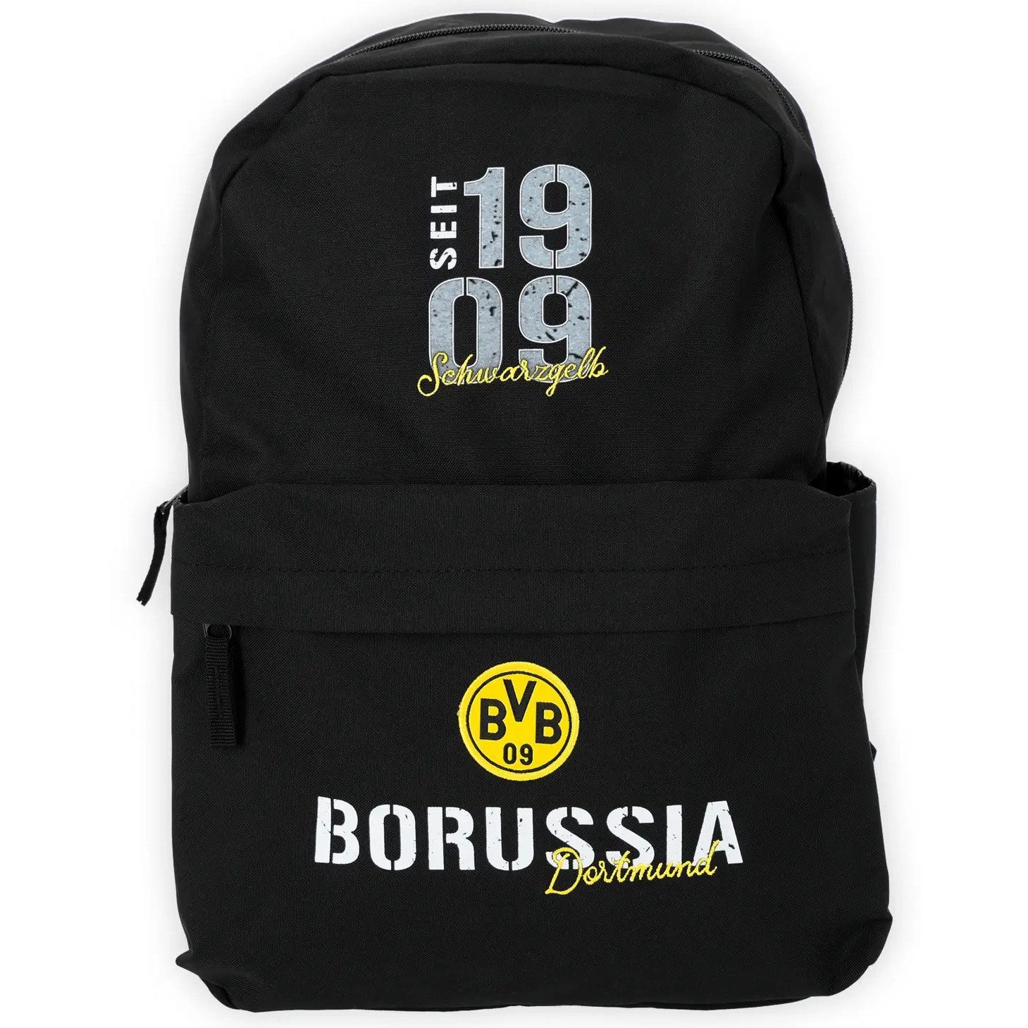 Fan BVB Rucksack Der BVB-Rucksack aus der Elements-Kollektion passt zu jedem Look. Die schwarze Tasche trägt mehrere Aufdrucke in verschiedenen Stilrichtungen: einen „SEIT 1909 Schwarz-Gelb“-Print sowie einen "Borussia Dortmund"-Schriftzug mittig und das BVB-Emblem darüber. Mit drei Fächern außen und weiteren 3 Fächern innen, ist der Rucksack nicht nur optisch ein Hingucker, sondern auch praktisch. Der verstellbaren und gepolsterten Tragegurte sorgen für einen bequemen Transport.