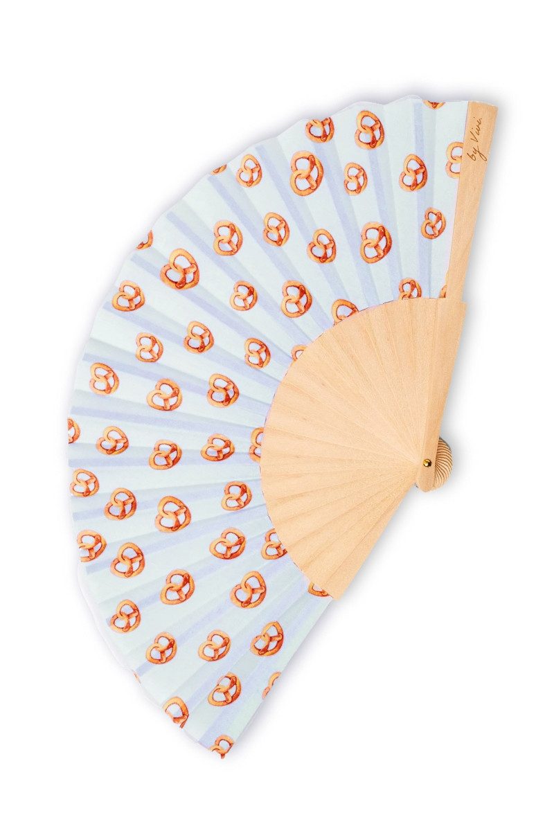 Stylischer Handfächer mit liebevollem Brezelmotiv im Trachtenstil – perfekt fürs Oktoberfest und warme Sommertage
