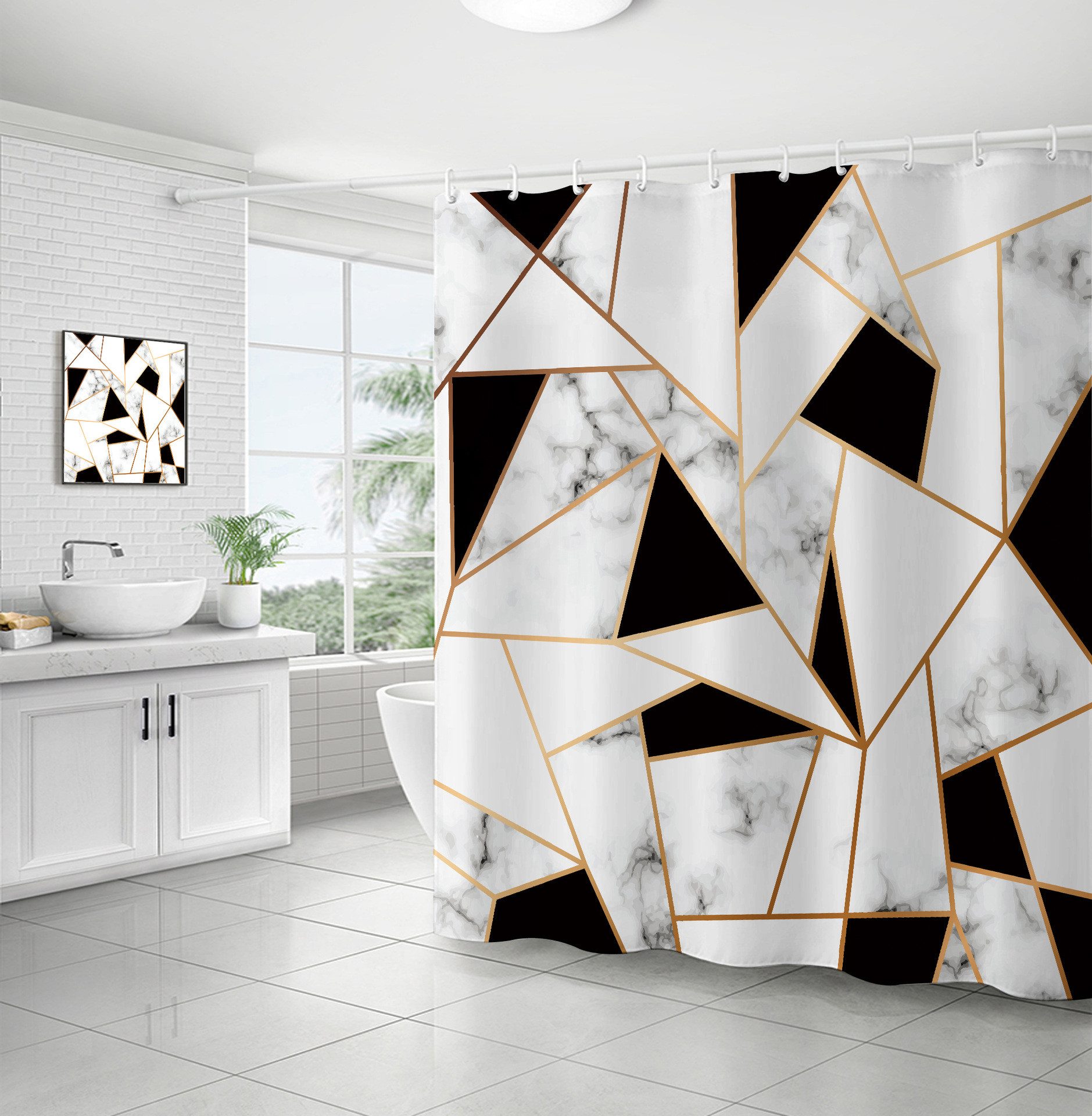 Der Duschvorhang wird mit 12 weißen Kunststoffhaken geliefert, PVC-frei, geeignet für gerade oder gebogene Duschstangen.