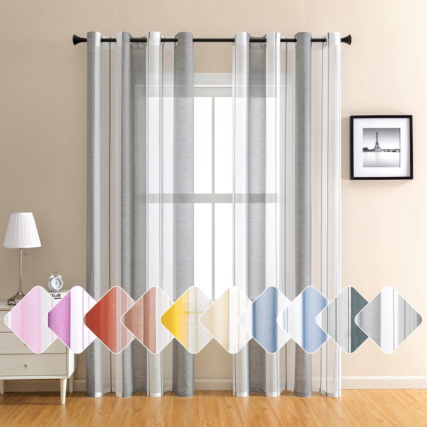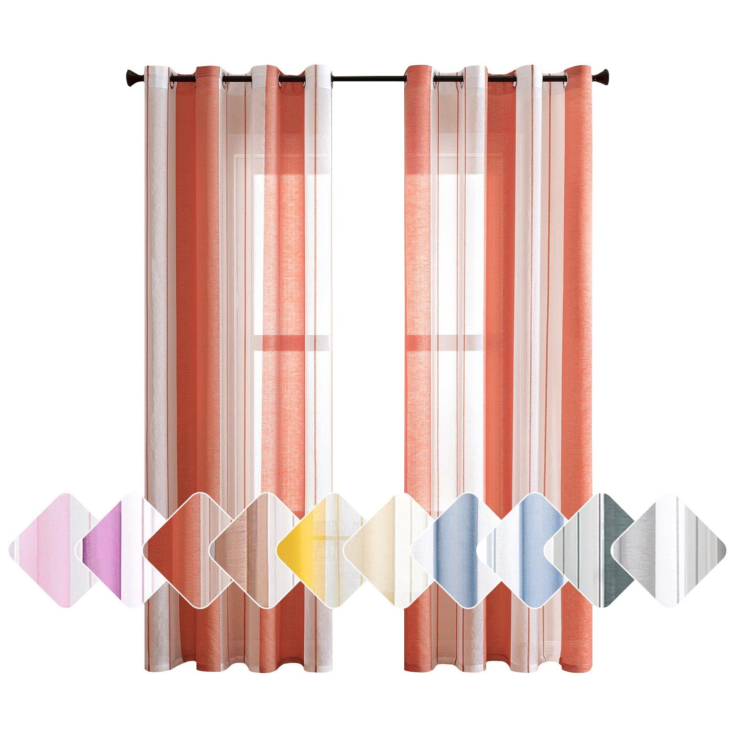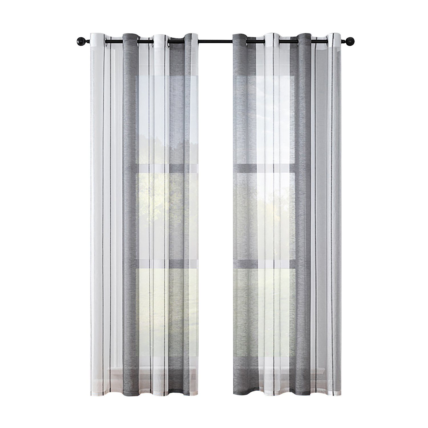 Diese gestreiften halbtransparenten Vorhänge sind in zwei Farben erhältlich und zeichnen sich durch ihre schlichte und elegante Form aus. Die gestreiften Vorhänge lassen helle Räume herein, schützen aber die Privatsphäre, und die farbigen Vorhänge verleihen dem Wohnzimmer ein besonderes Ambiente, sind aber auch ideal für Esszimmer, Schlafzimmer, Jugendzimmer und mehr.