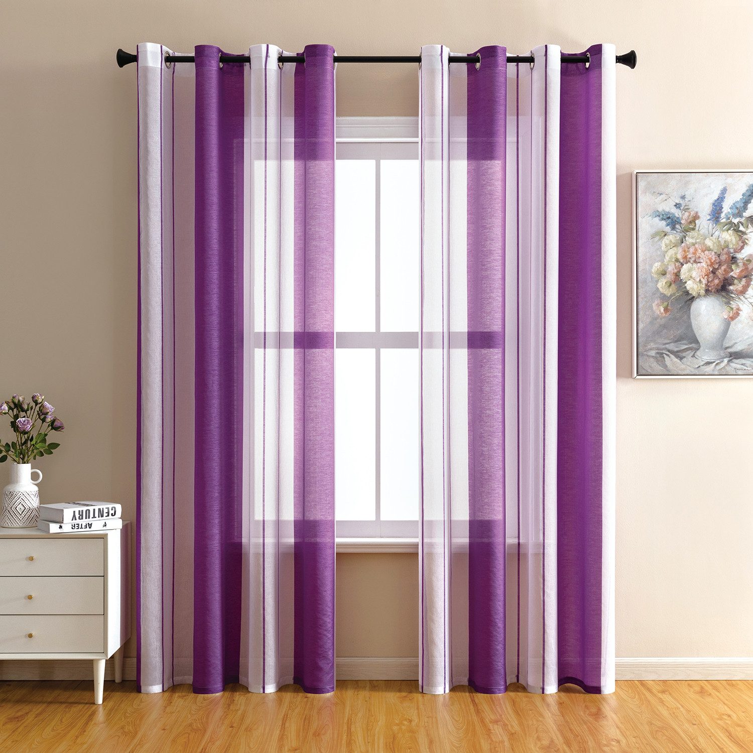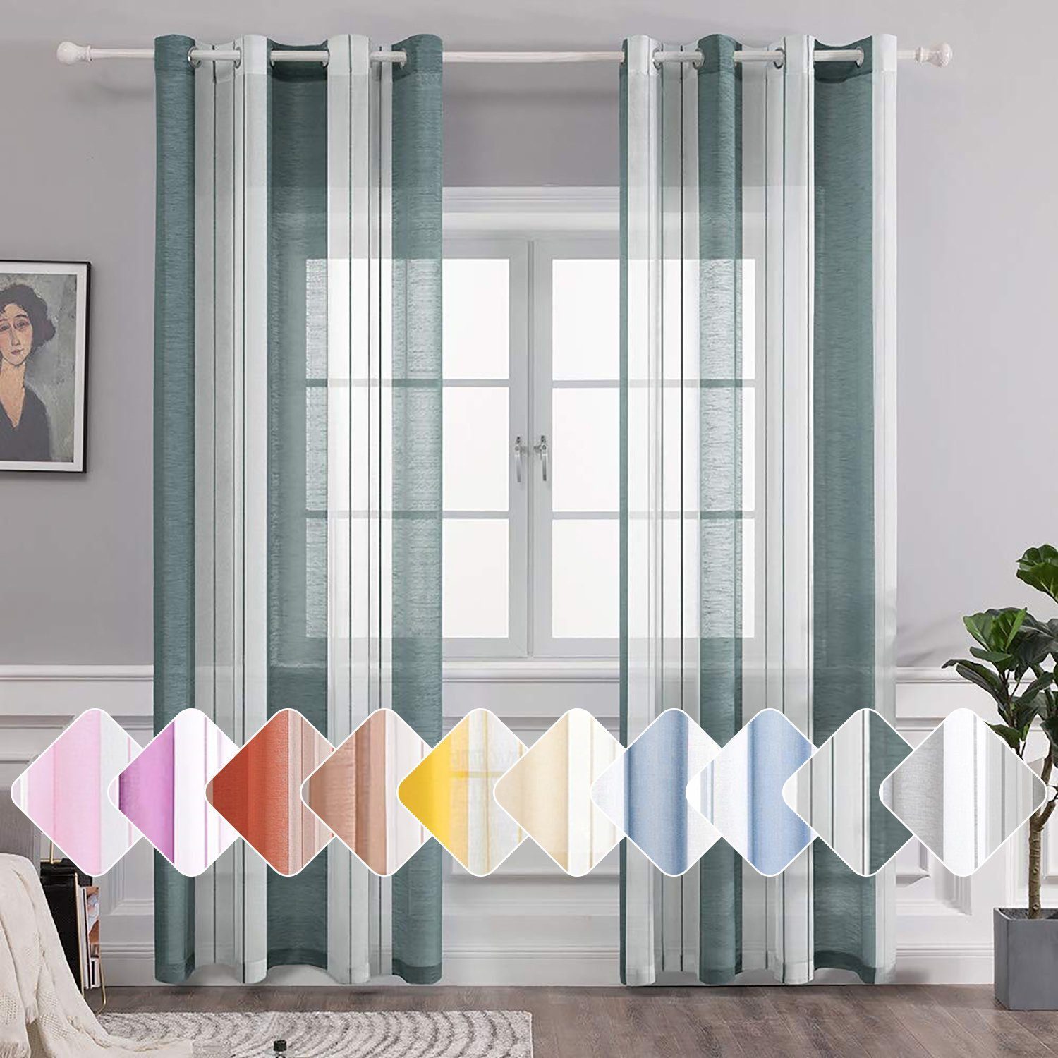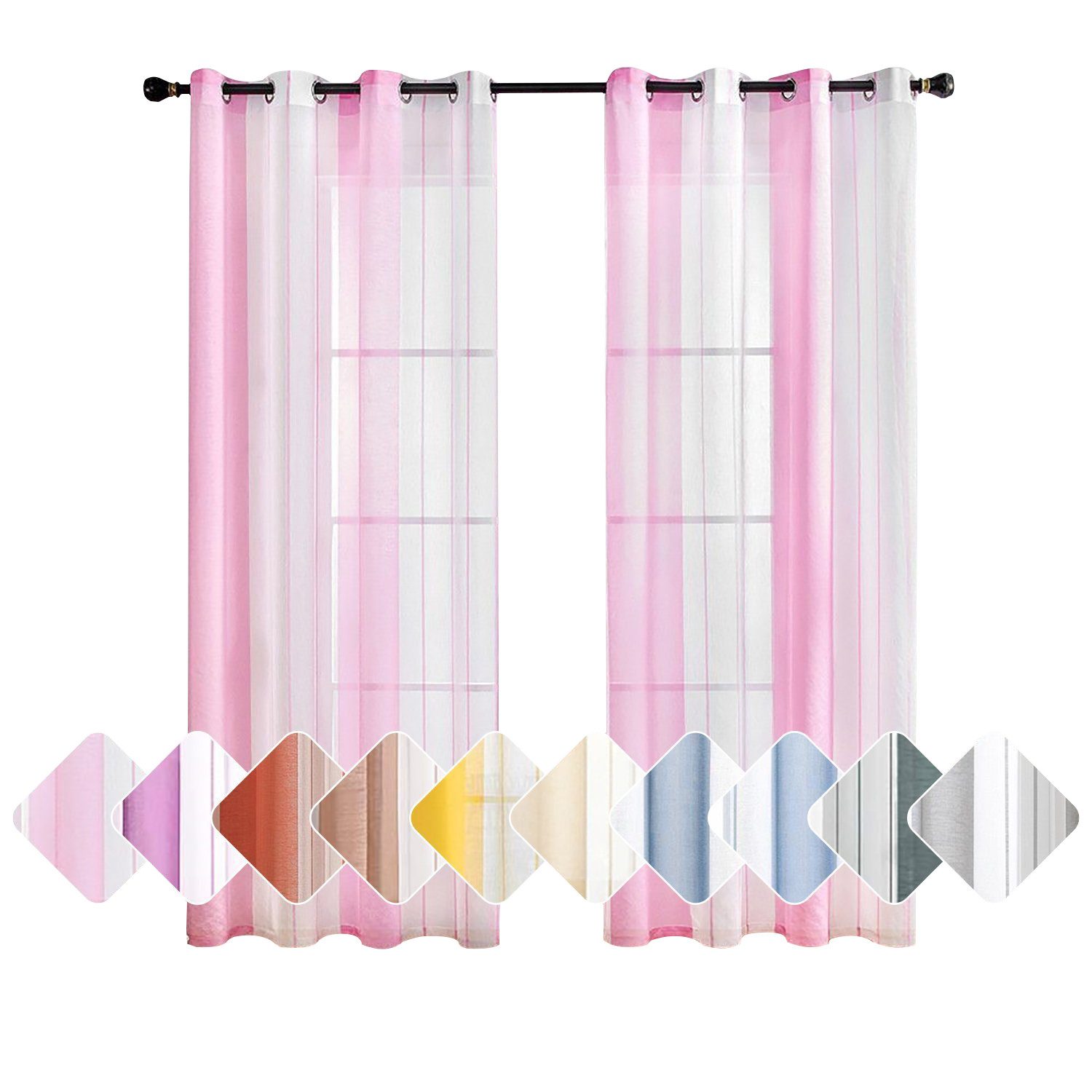 Diese gestreiften halbtransparenten Vorhänge sind in zwei Farben erhältlich und zeichnen sich durch ihre schlichte und elegante Form aus. Die gestreiften Vorhänge lassen helle Räume herein, schützen aber die Privatsphäre, und die farbigen Vorhänge verleihen dem Wohnzimmer ein besonderes Ambiente, sind aber auch ideal für Esszimmer, Schlafzimmer, Jugendzimmer und mehr.