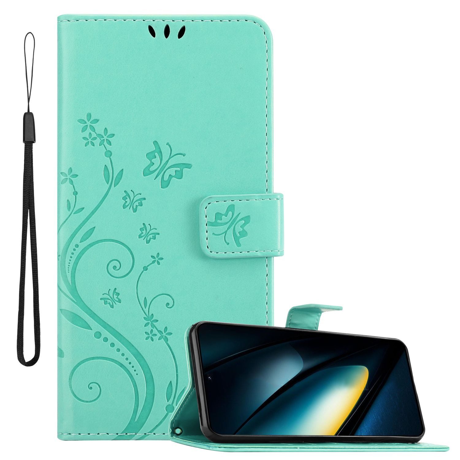 Eigenschaften | Schutzhülle im Blumen Design mit Magnetverschluss, Standfunktion und Kartenfächern |