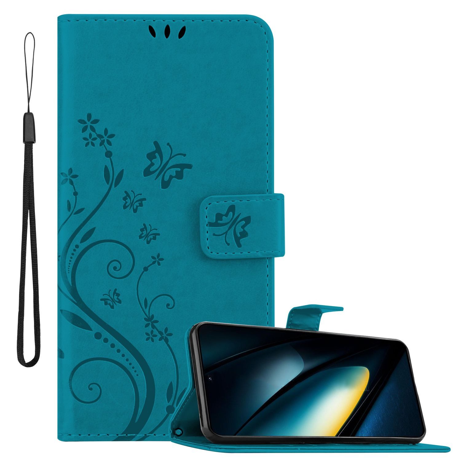Cadorabo Handyhülle im Blumen Design mit Magnetverschluss, Standfunktion und Kartenfächern
